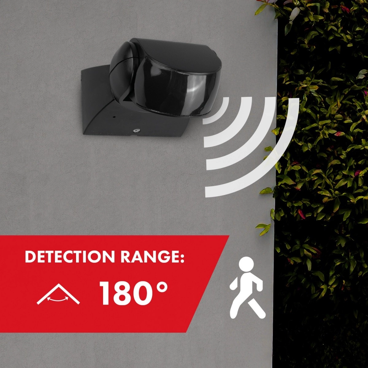 Detekční úhel 180° a dosah až 12 m spolehlivě pokryjí vstupy, příjezdové cesty i chodníky kolem domu.