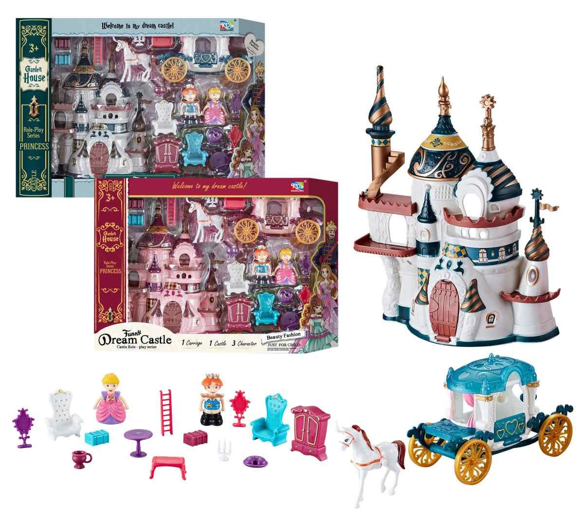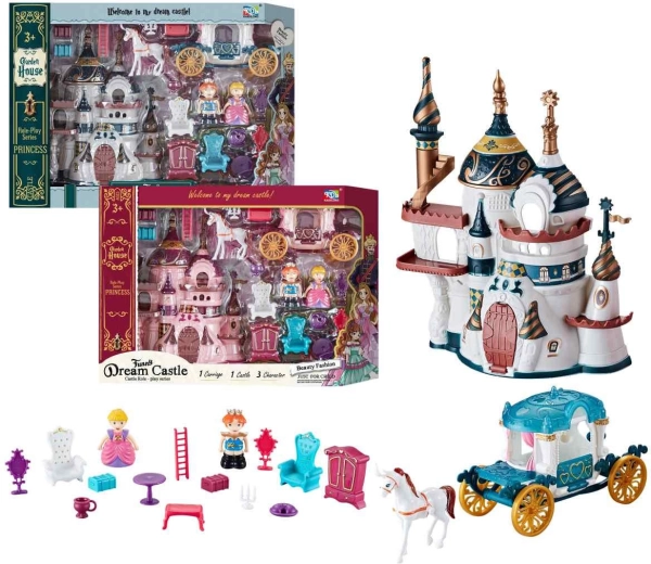 Součástí balení je hrad, kočár, dvě figurky a nábytek. Produkt je k dispozici ve dvou barvách, z nichž si můžete vybrat podle preferencí dítěte. Díky rozměrům 18,5 × 21,5 cm se skvěle hodí pro domácí hraní i cesty.
