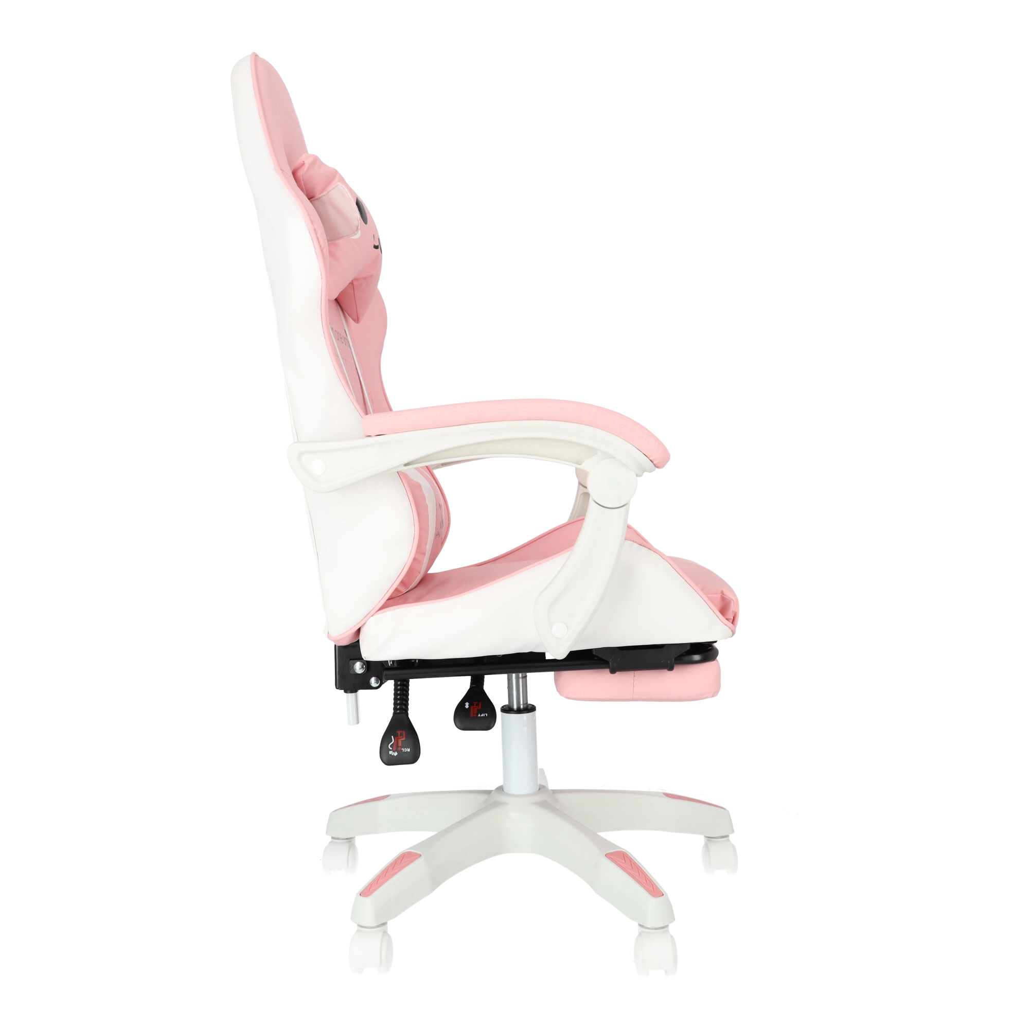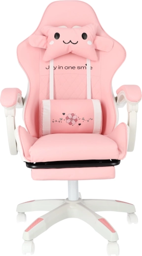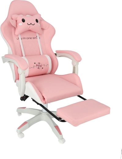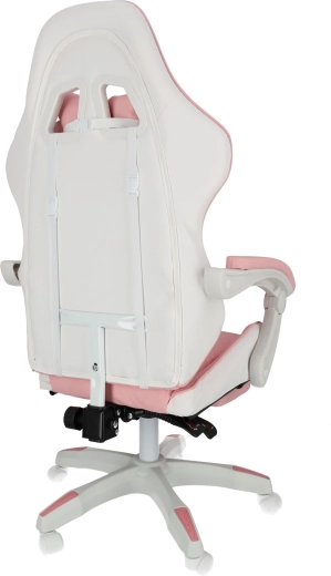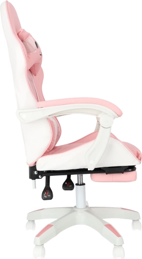 Ke komfortu přispívají polstrované područky a výsuvná opěrka nohou, která během chvilky promění pracovní pozici v relaxační. Robustní základna s otočným mechanismem 360° a kolečka umožní snadný pohyb po pokoji. Stylové růžovo-bílé provedení se hodí do moderních dětských a studentských pokojů.