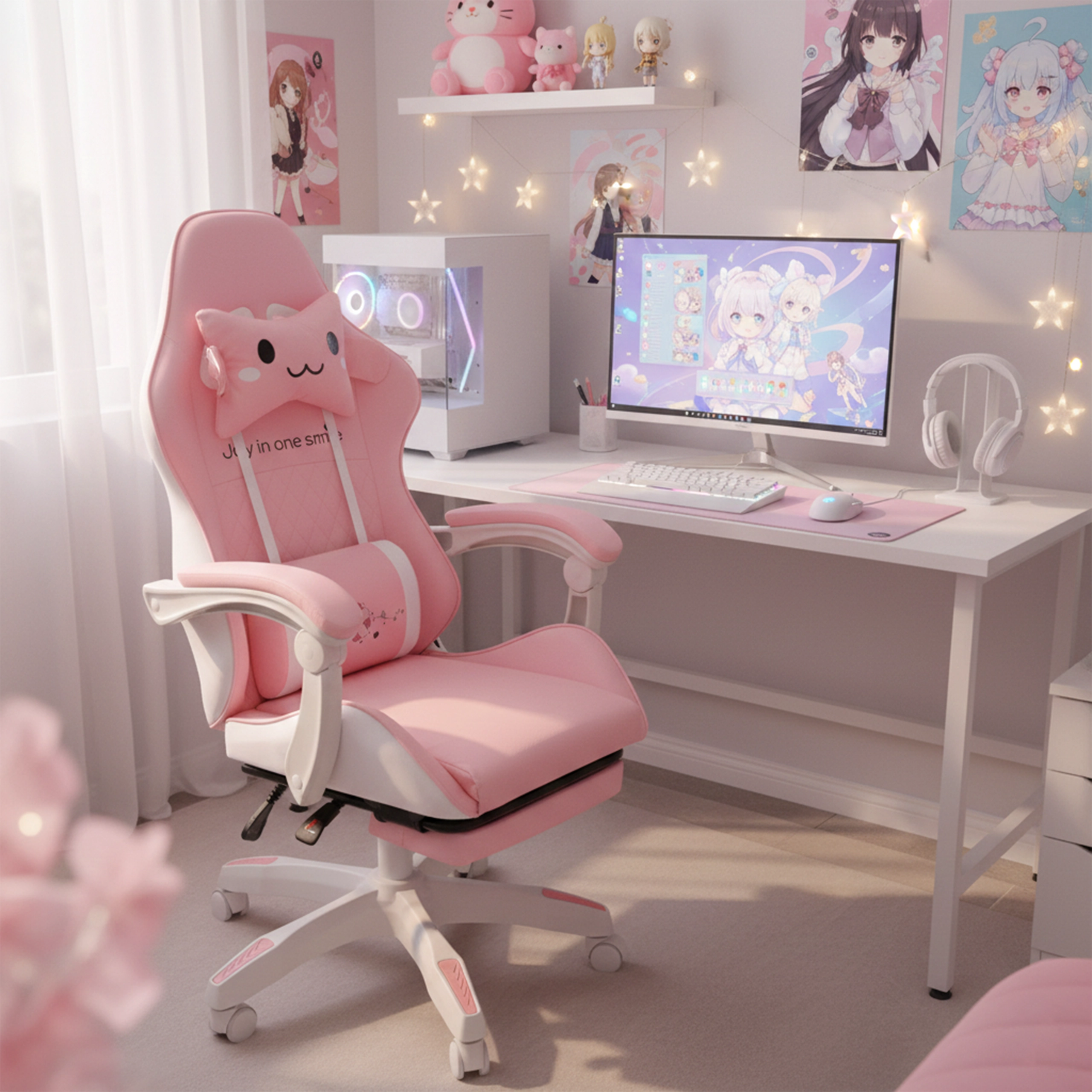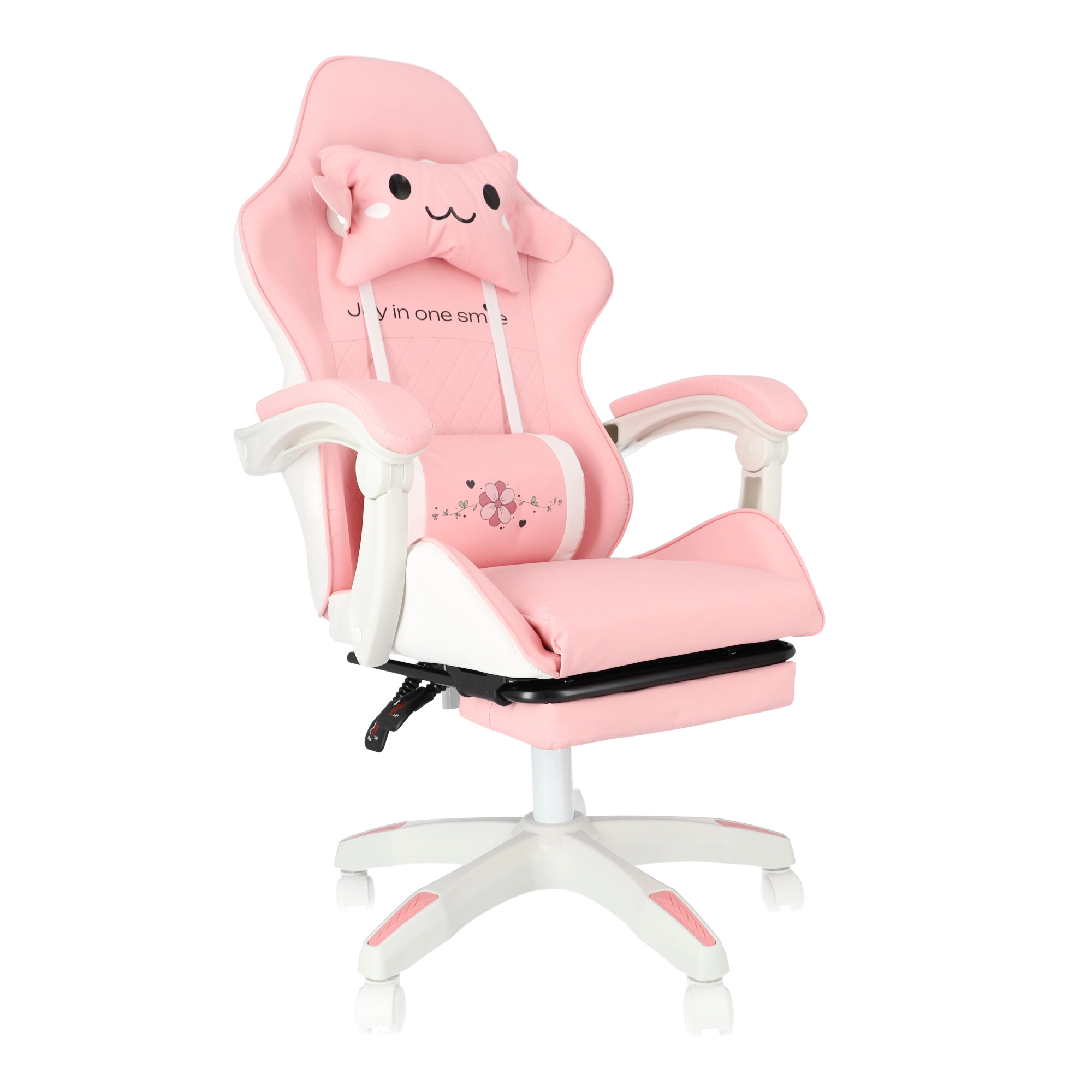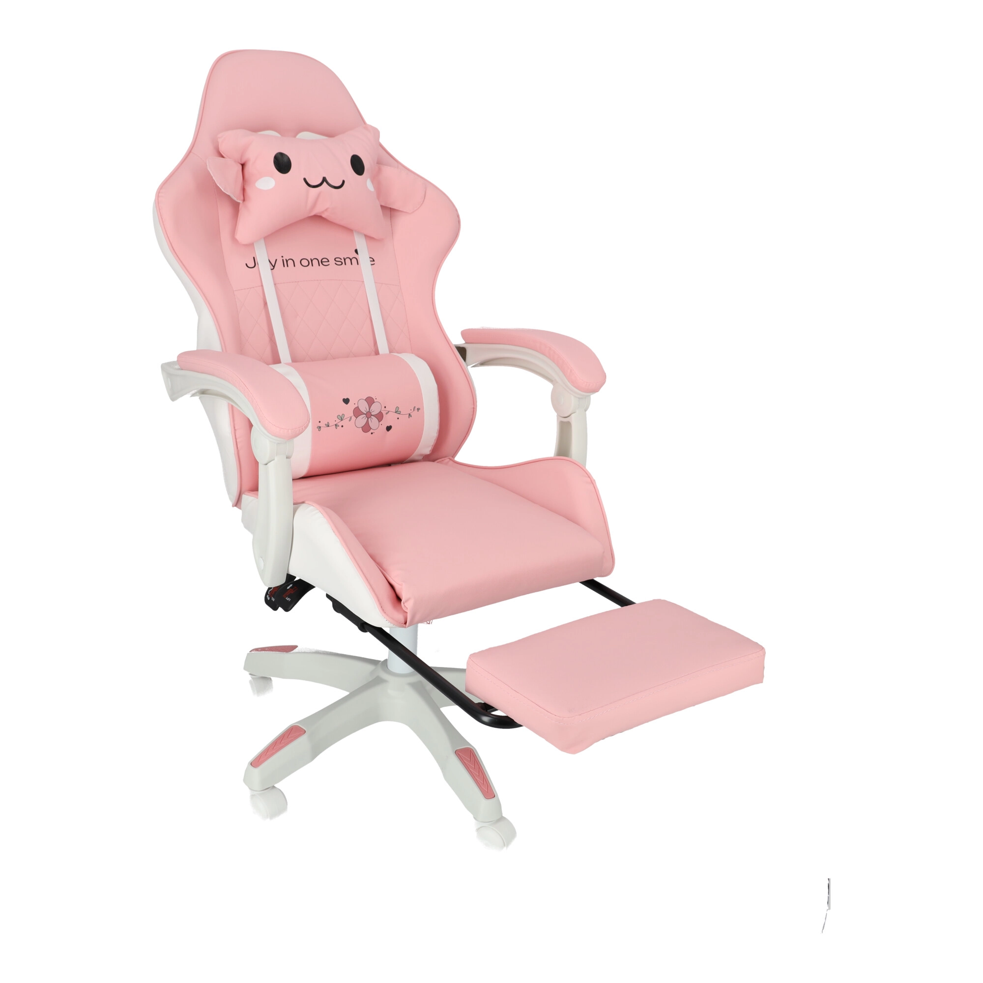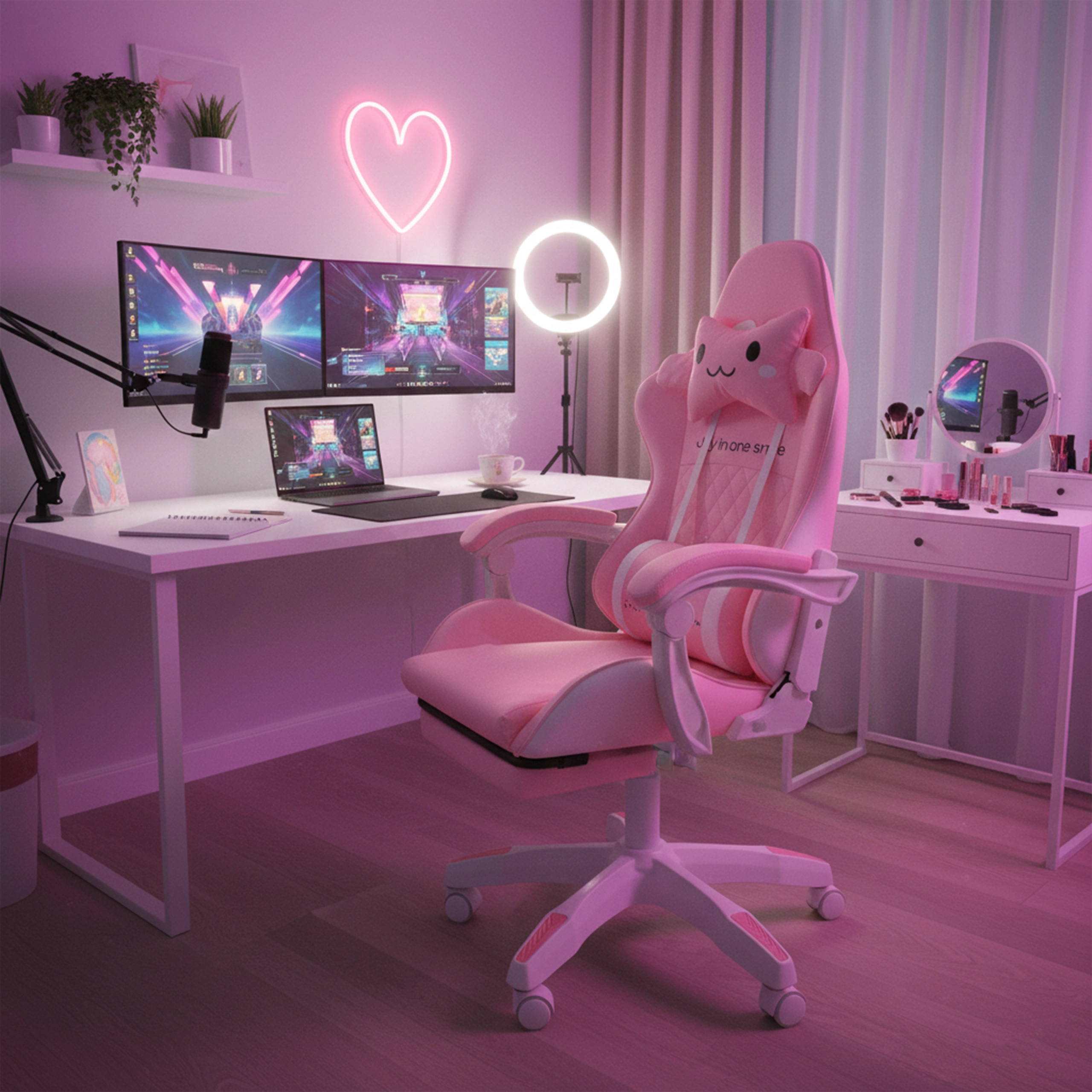Růžová dětská herní a kancelářská židle kombinuje ergonomický komfort, nastavitelnou výšku a výsuvnou opěrku nohou pro rychlý odpočinek. Kbelíkové sedadlo se stabilní oporou zad, měkké područky s pěnou a plynulé otáčení o 360° s kolečky usnadní učení i hraní. Součástí jsou polštářky pro krk a bedra pro zdravější sezení v dětském pokoji.