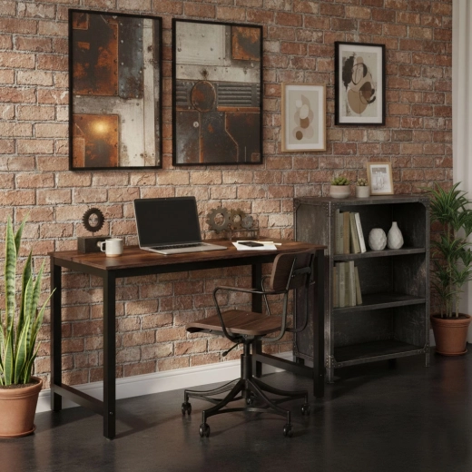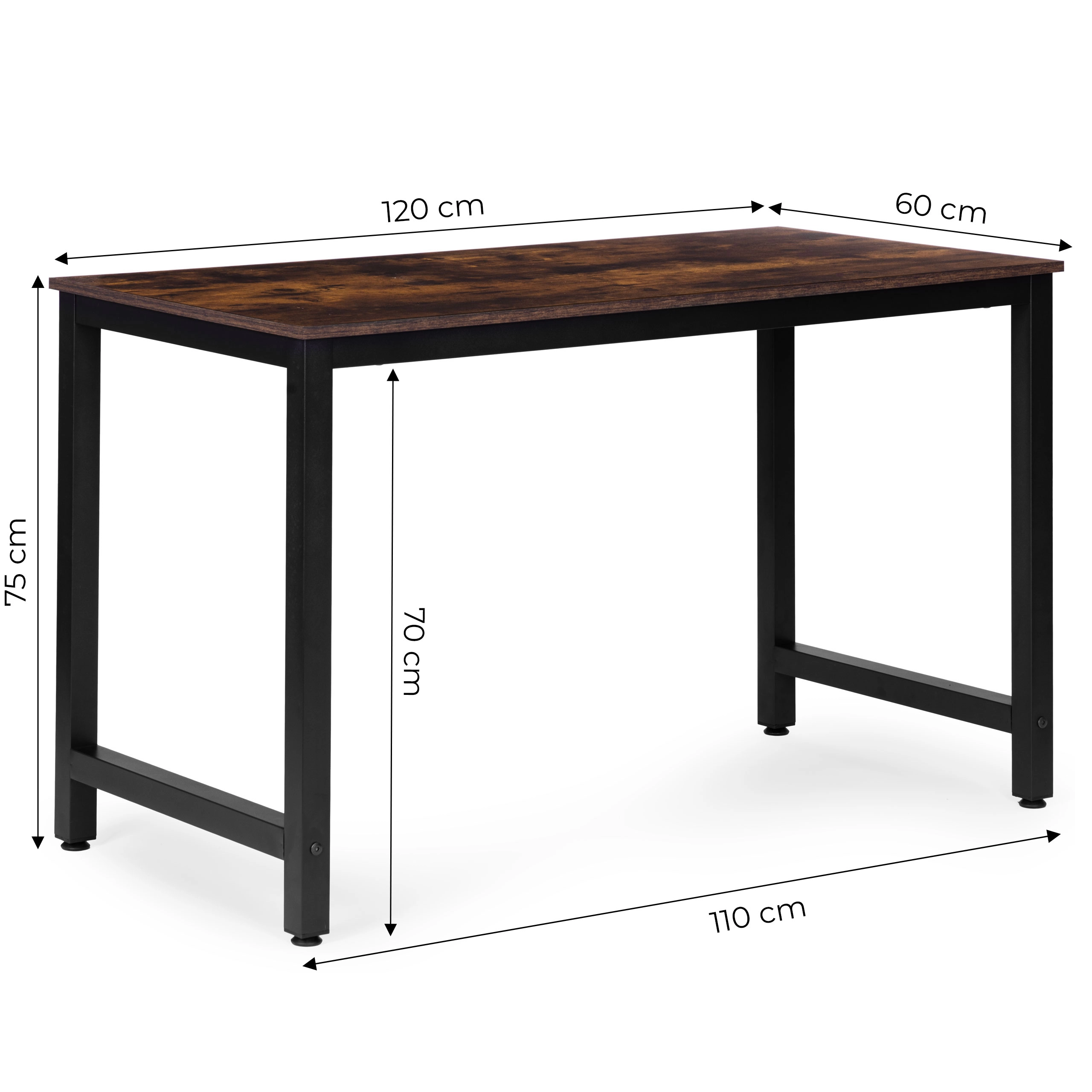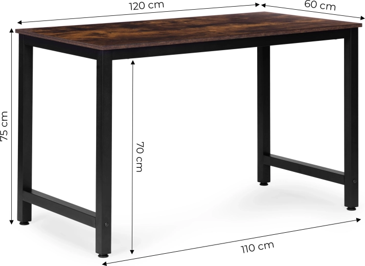 Vytvořte si pohodlné a organizované pracovní místo. Prostorná deska 120 × 60 cm poskytuje dost místa pro notebook, monitor, dokumenty i příslušenství, zatímco práškově lakovaný ocelový rám zajišťuje dlouhou životnost a pevnost. Dekor starý ořech dodává interiéru hřejivý, elegantní charakter.
