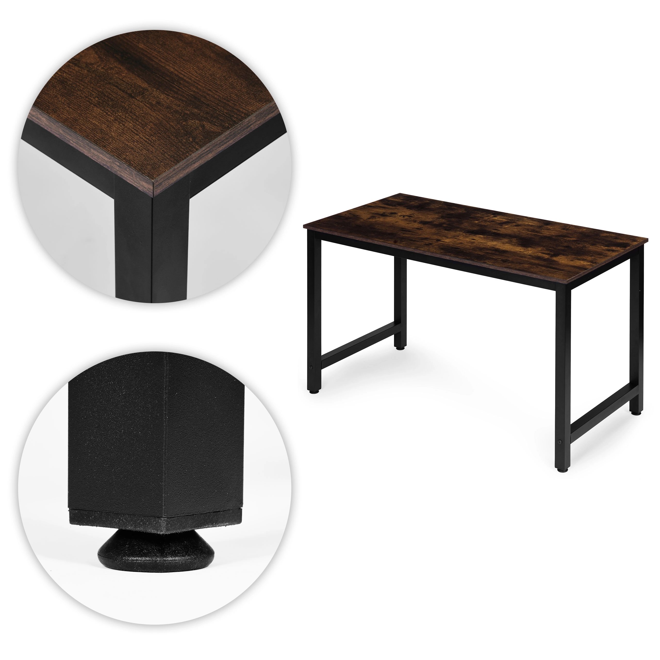 Stylový psací stůl ModernHome nabízí velkou pracovní plochu 120 × 60 cm, pevný kovový rám a odolnou desku z MDF s melaminem. Ideální pro práci, studium i gaming. Díky nastavitelným nožičkám stojí stabilně i na nerovné podlaze, unese až 100 kg a svým moderním industriálním designem zapadne do každého interiéru.
