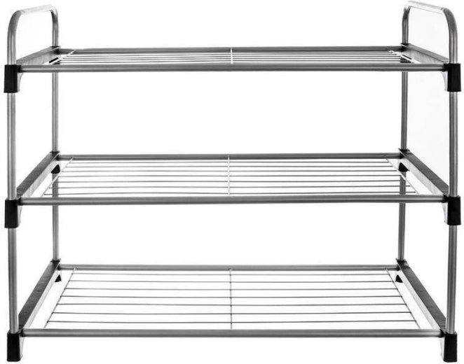 Kompaktní a praktický kovový botník se 3 úrovněmi o rozměrech 65,5 × 30 × 54 cm pomůže efektivně využít prostor a udržet obuv přehledně uspořádanou. Nosnost 9 kg (každá police 3 kg), stabilní konstrukce v stříbrné a černé barvě ladí s klasickými i moderními interiéry.