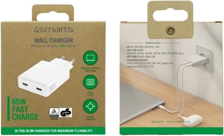 Kompaktní a výkonná nabíječka PDPlug s technologií GaN přináší rychlé nabíjení až 65 W přes 2× USB‑C Power Delivery. Díky inteligentnímu řízení energie automaticky rozpozná zařízení a přizpůsobí výkon pro maximální rychlost a bezpečnost. Štíhlé provedení Slim Plug s plochou vidlicí se snadno vejde i za nábytek, ideální do domu, kanceláře i na cesty.