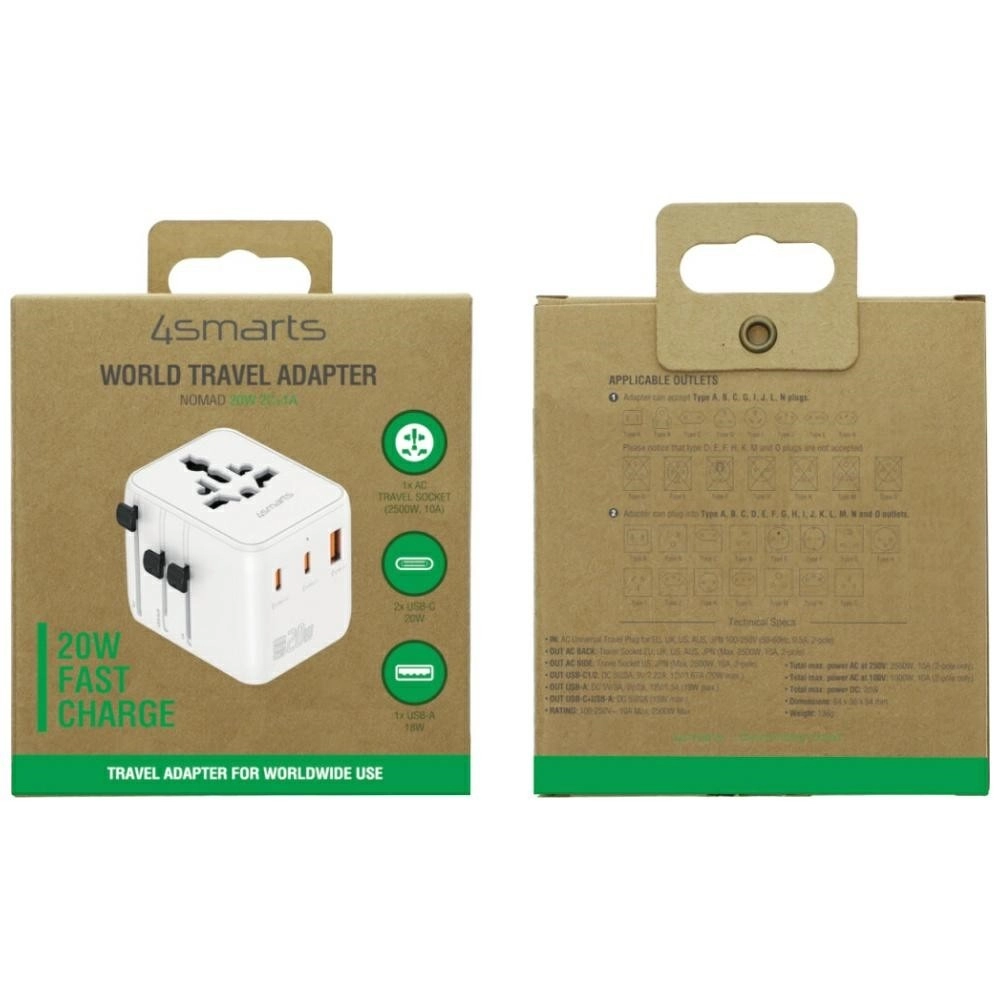 4smarts NOMAD 20W je ideální společník pro služební i soukromé cesty. V jednom těle spojuje globální redukci do zásuvek a víceportovou rychlou nabíječku, takže zvládne napájet jak drobnou elektroniku přes USB, tak i zařízení z klasické sítě. Kompaktní bílé provedení se vejde do každé tašky a díky technologii GaN je adaptér menší, efektivnější a chladnější.