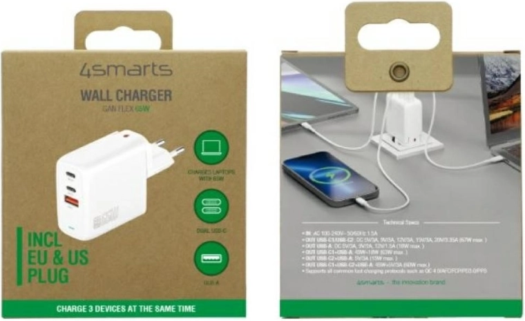 Využijte maximální výkon v minimálním těle. GaN technologie umožňuje výrazně zmenšit rozměry při zachování špičkové účinnosti a nižšího zahřívání. Nabíječka dodá až 65 W přes USB‑C, takže bez potíží rychle nabije notebook, tablet i chytrý telefon. Díky třem portům snadno obsloužíte více zařízení najednou.