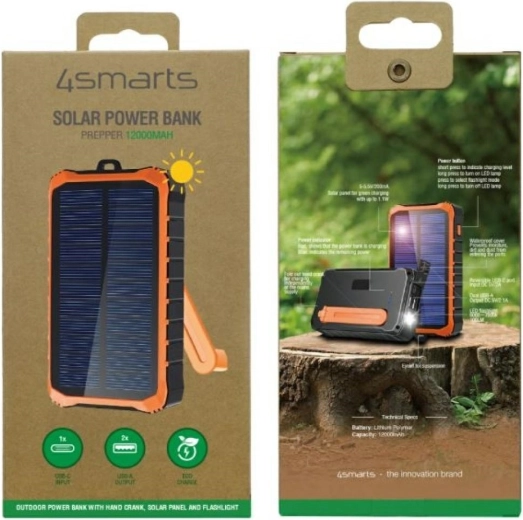 Spolehlivá solární powerbanka s kapacitou 12000 mAh pro nouzové i každodenní nabíjení. Nabízí ekologické solární dobíjení, ruční generátor s kličkou, rychlé USB‑C nabíjení a pokročilé bezpečnostní ochrany. Odolná konstrukce se silikonovou krytkou portů a LED indikátory stavu zajišťuje bezstarostné použití doma, na cestách i v přírodě.