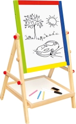 - tabule se stojanem, 3 ks barevných kříd, 1 ks fix a houbička