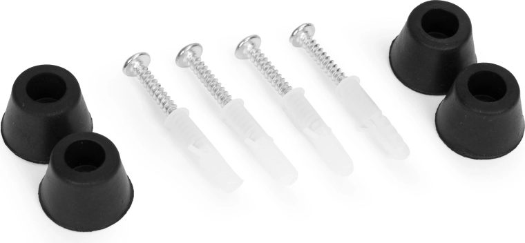 V balení najdete šrouby, hmoždinky a gumové distanční podložky pro rychlou, stabilní a odvětranou instalaci na jakýkoli pevný podklad.