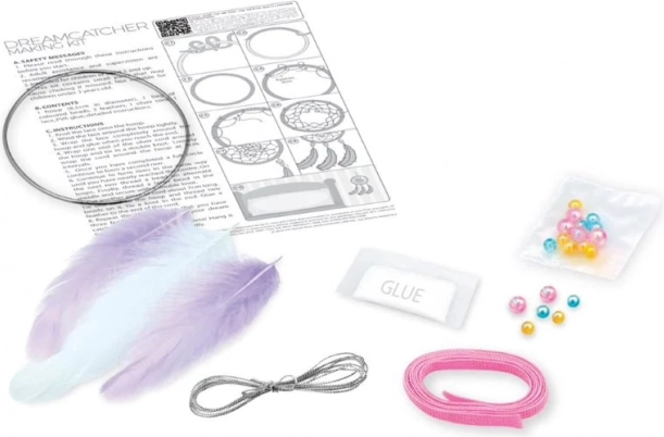 Obsahuje vše, co potřebujete: kruh, barevné nitě, korálky a peříčka. Umožňuje snadnou tvorbu vašeho osobního lapače snů.