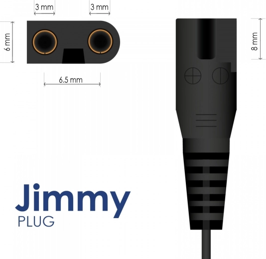 - Přesně tvarovaný napájecí konektor pro zařízení JIMMY