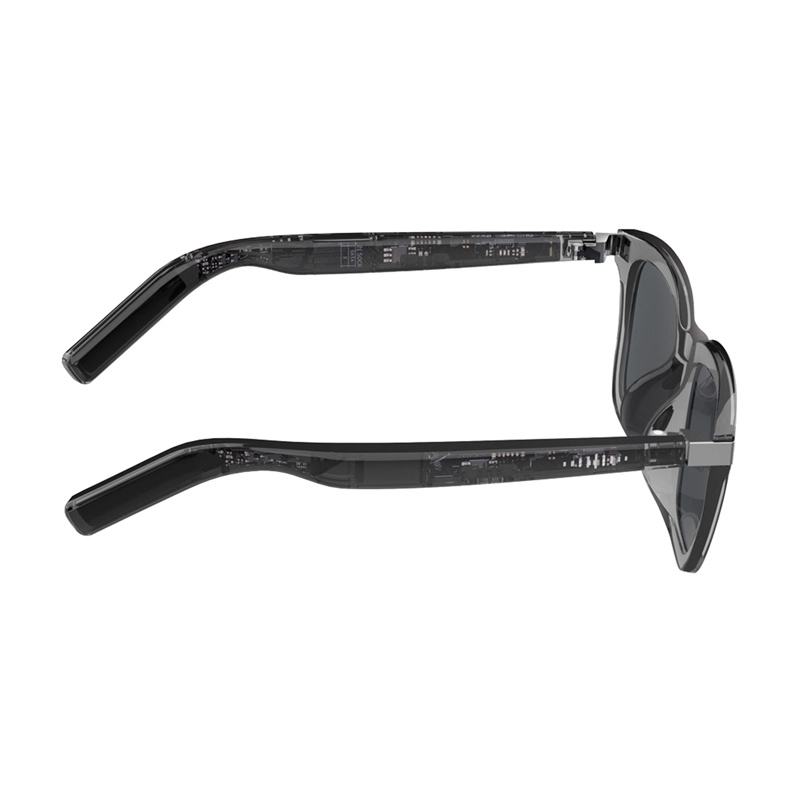 Čočky z odolného PC materiálu spolehlivě blokují UV záření a zvuk lze přepínat mezi vnitřním a venkovním režimem pro optimální poslech. Poloprůhledné, robustní straničky s viditelnou elektronikou podtrhují moderní vzhled, zatímco kvalitní panty a lehký rám TR zajistí pohodlí po celý den.