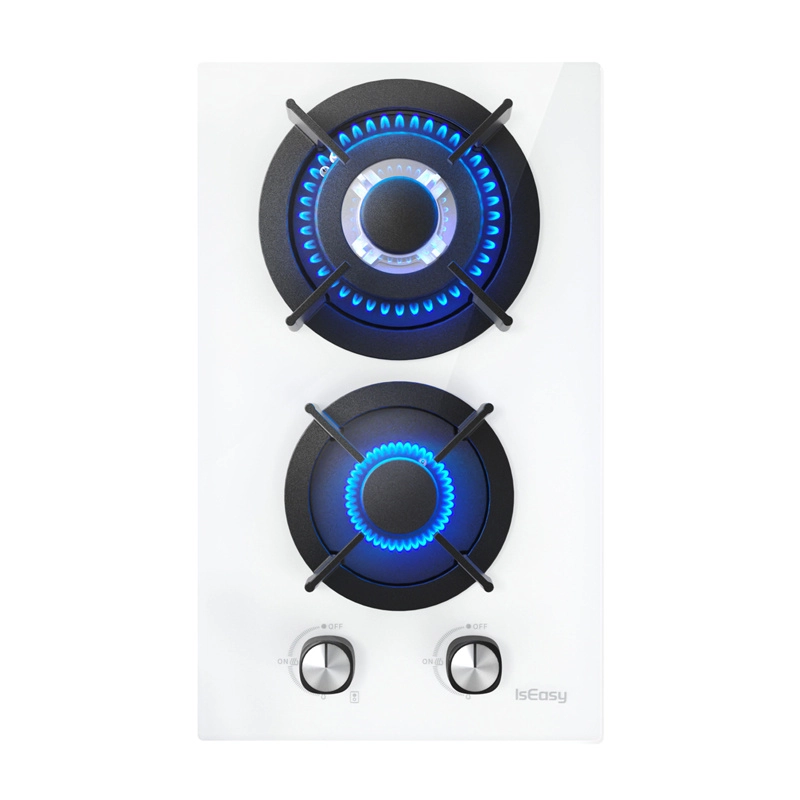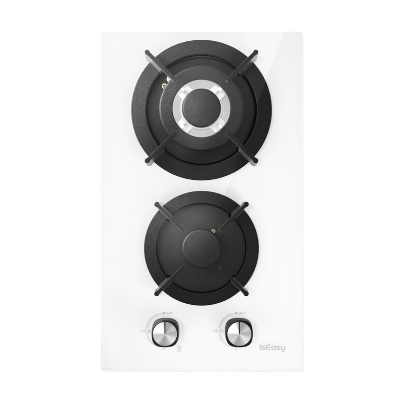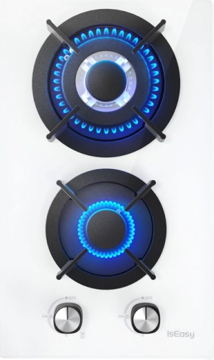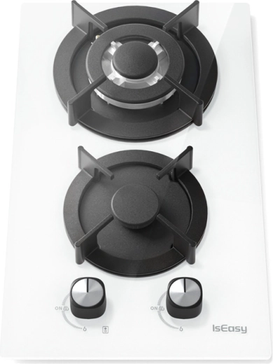 Kompaktní plynová varná deska ISEASY se dvěma hořáky nabízí kombinaci moderního designu a výkonu. Elegantní skleněný povrch v bílé barvě se snadno čistí, 2 hořáky 3300 W a 1000 W zajistí rychlé vaření i jemné dušení a vestavná instalace šetří místo v menších kuchyních.