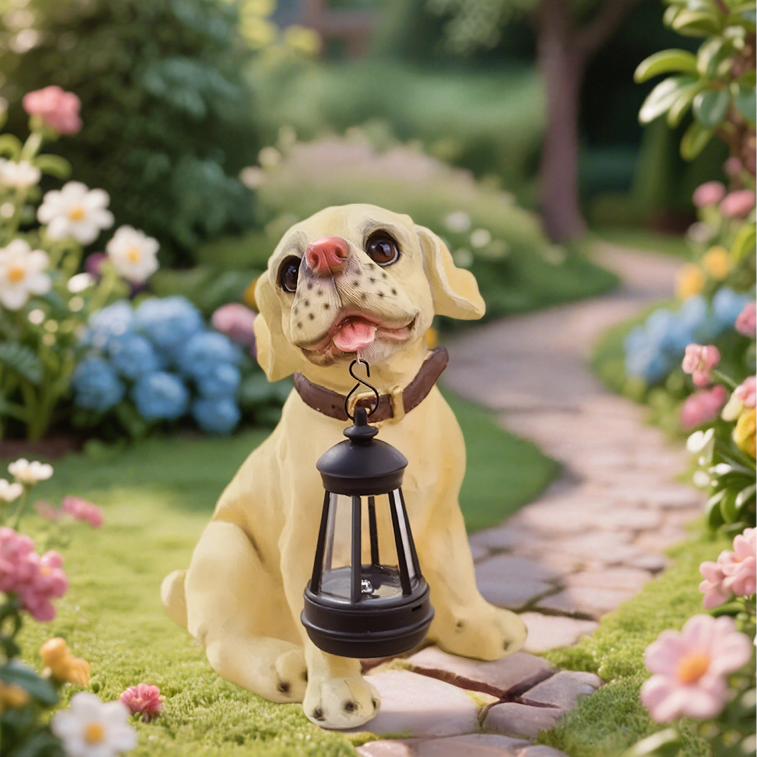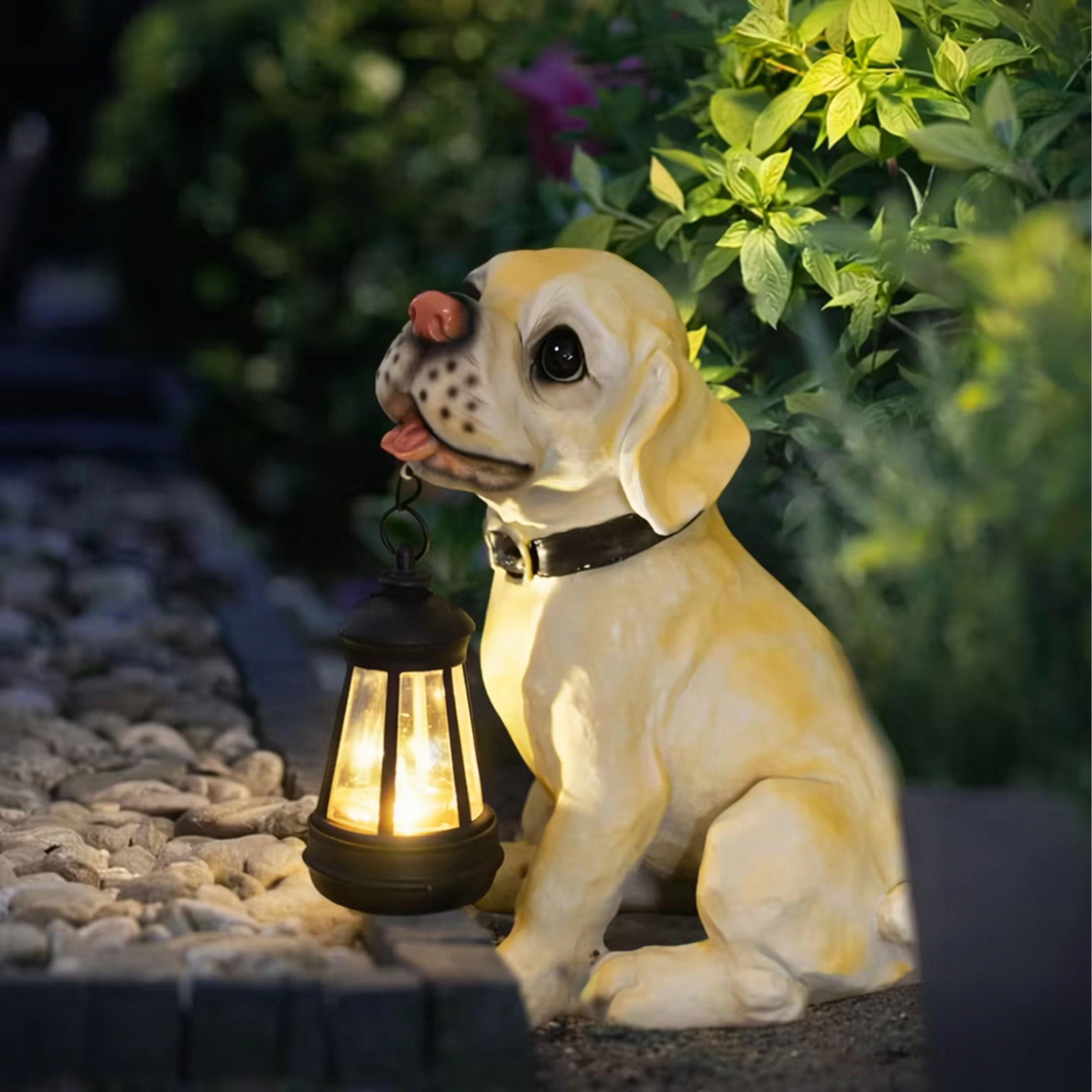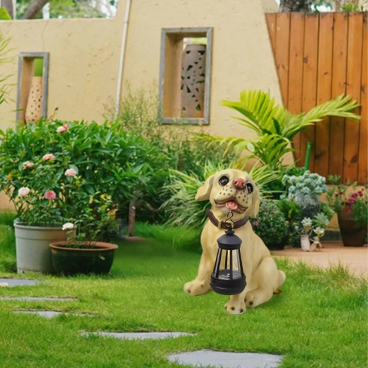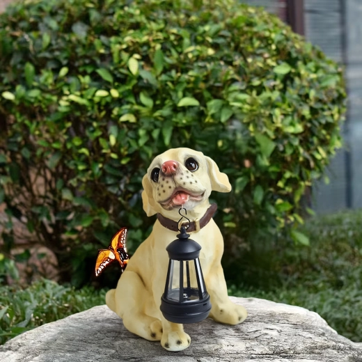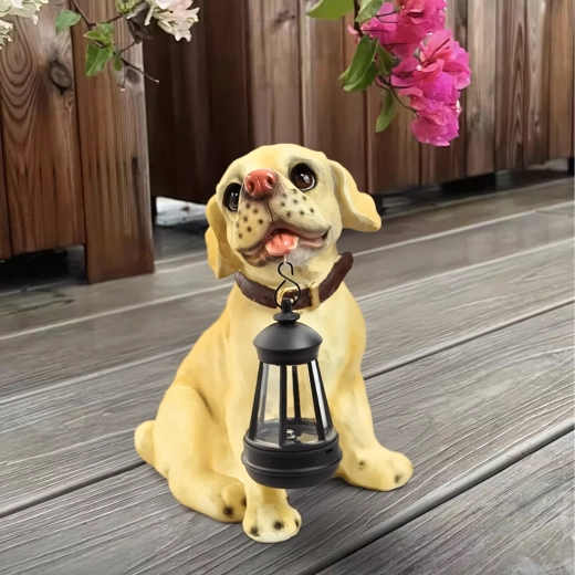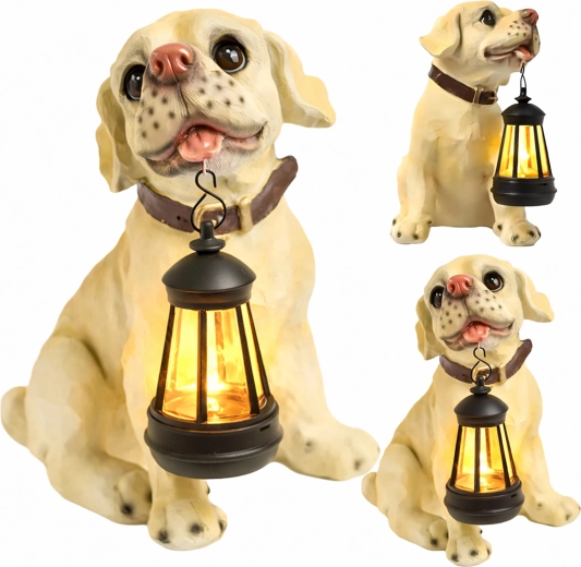 - Zahradní dekorativní lampa – soška psa s lucernou LED