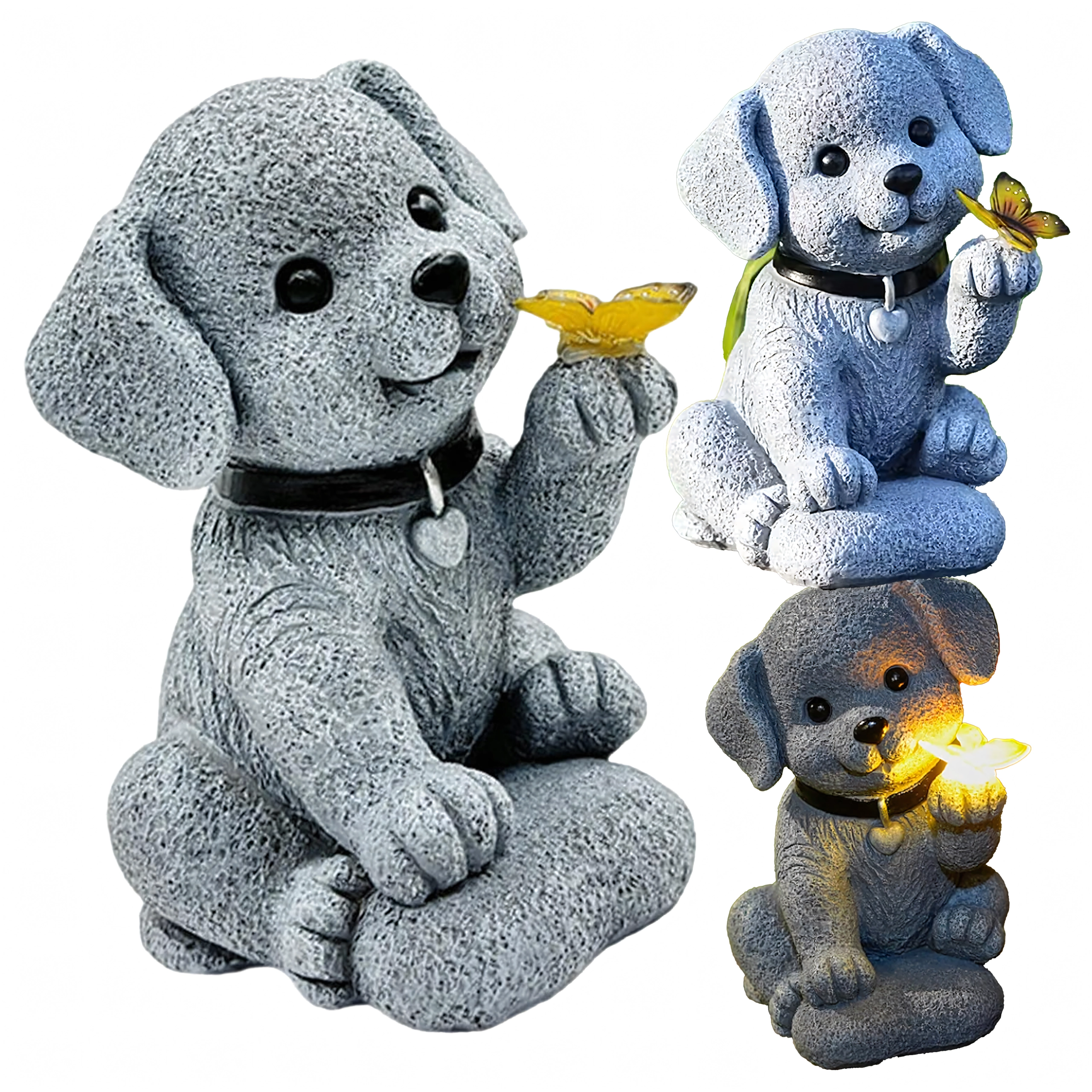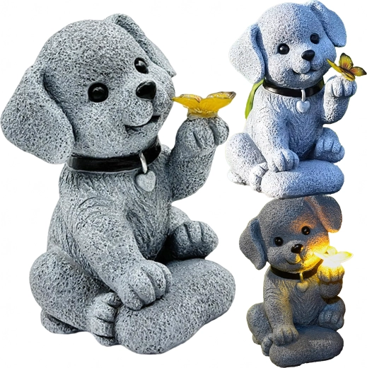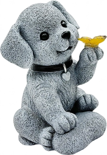 - Solární zahradní dekorativní lampa – figurka psa s motýlem