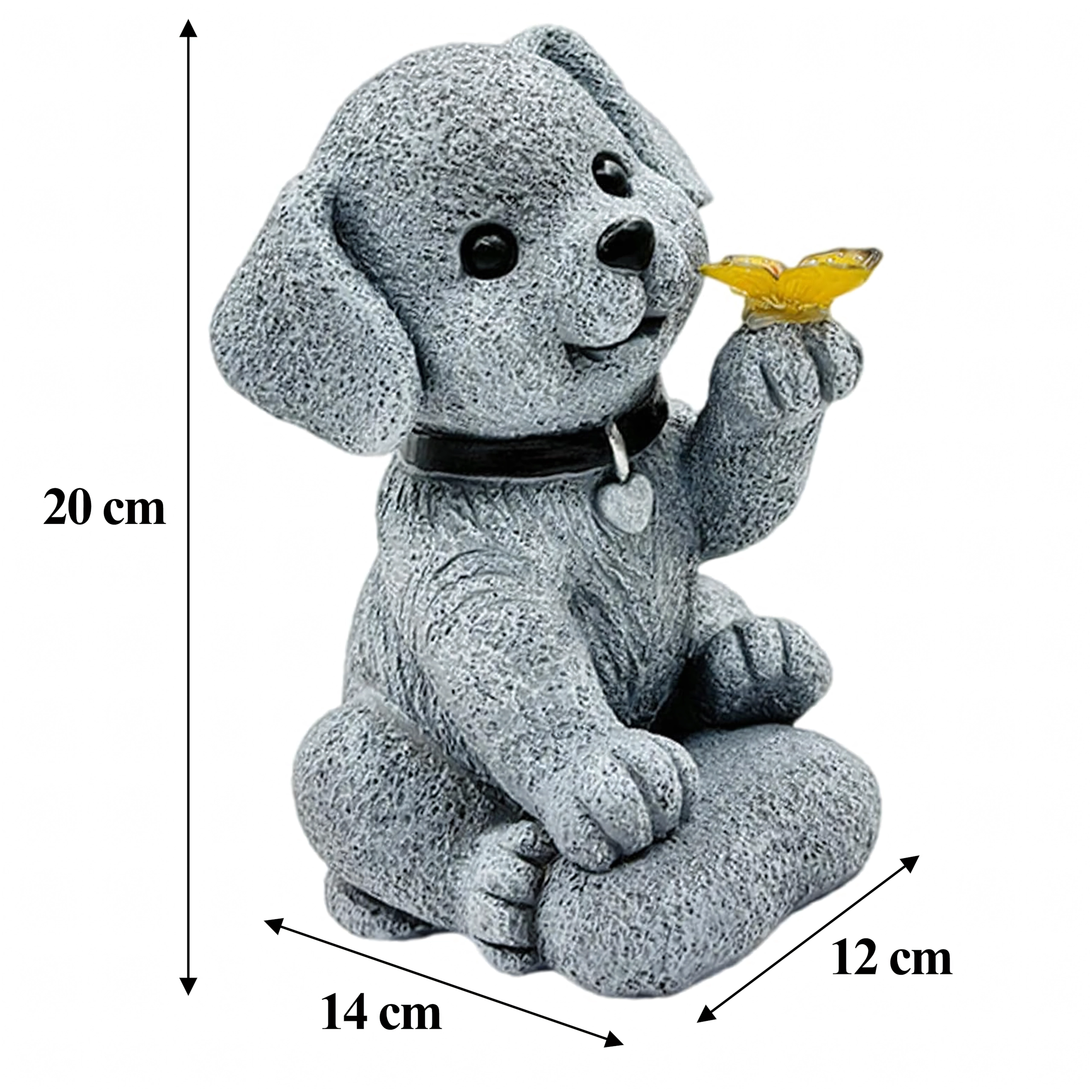 Roztomilá solární dekorace ve tvaru pejska s motýlem rozzáří vaši zahradu, terasu i balkon. Integrované LED zajišťuje teplé ambientní světlo po setmění, odolné provedení s kameninovým vzhledem je vhodné pro venkovní použití a díky stabilní základně ji snadno umístíte kamkoli.