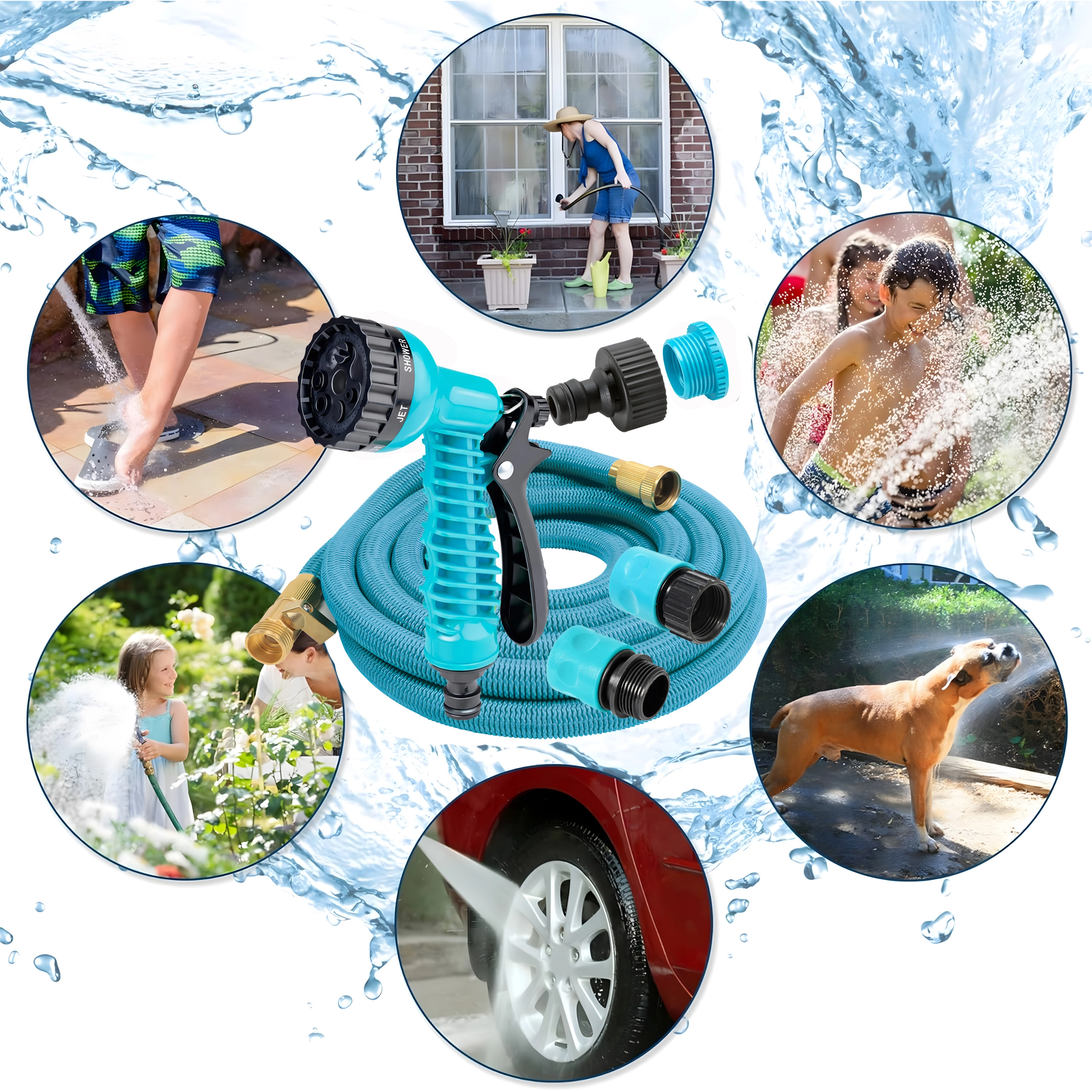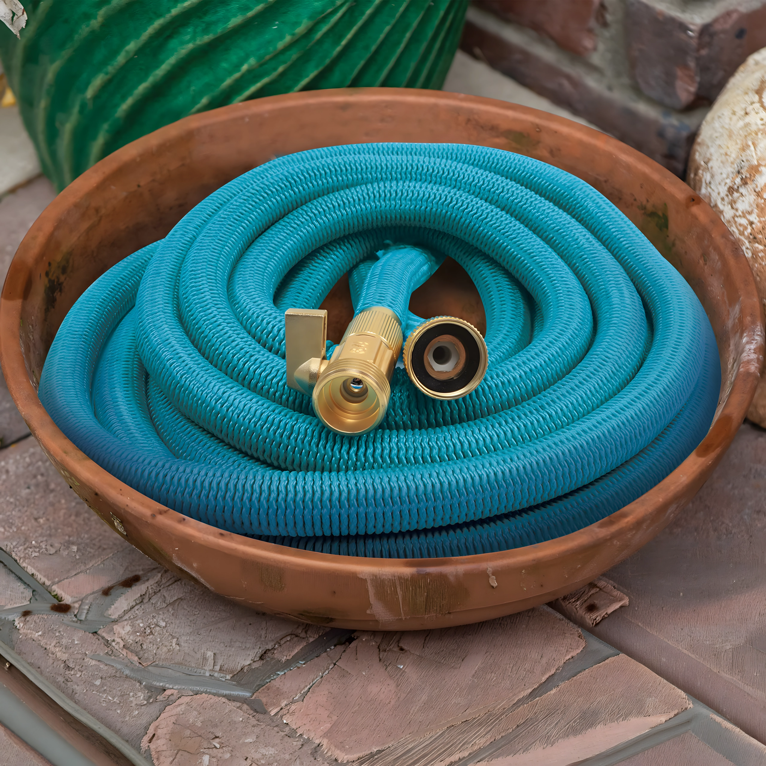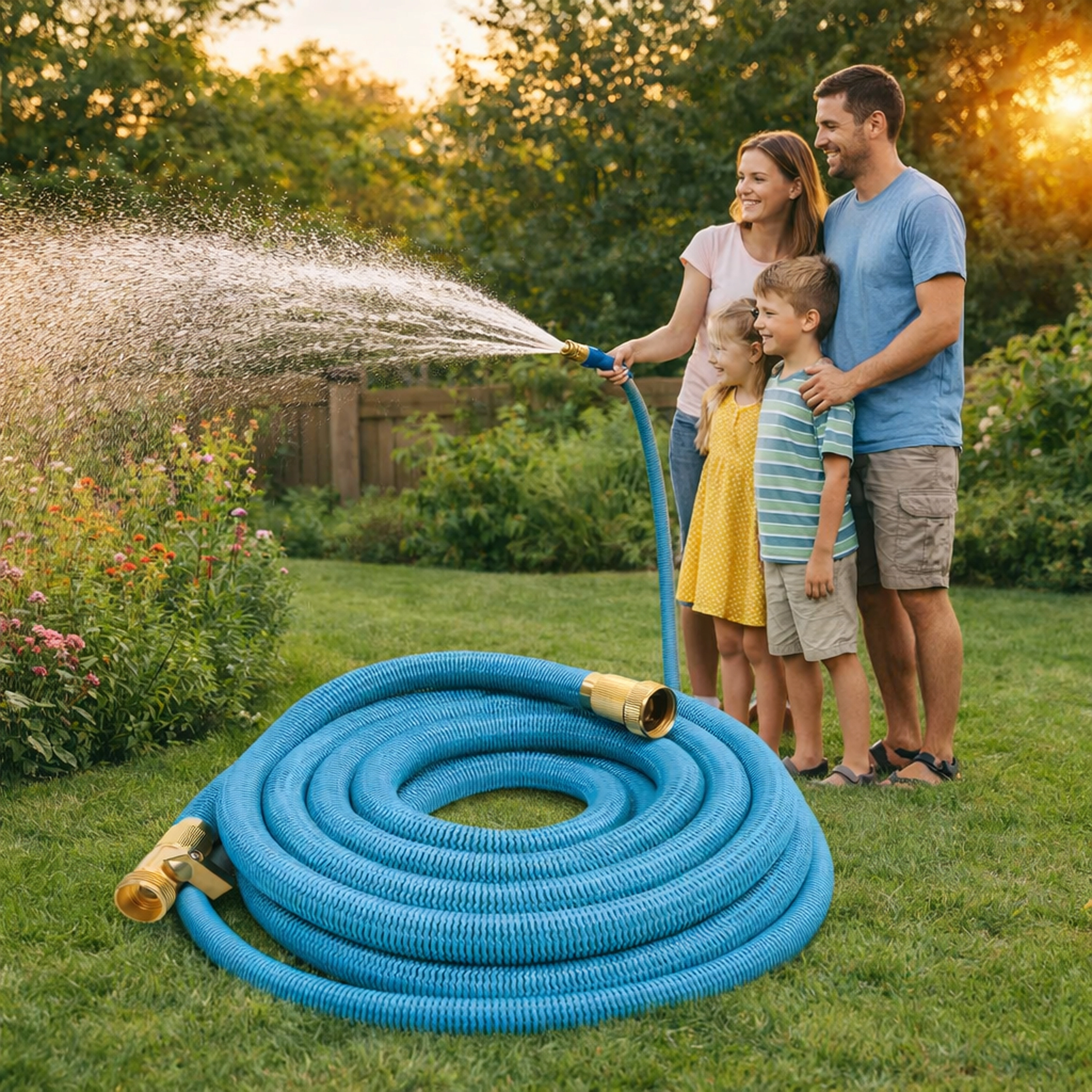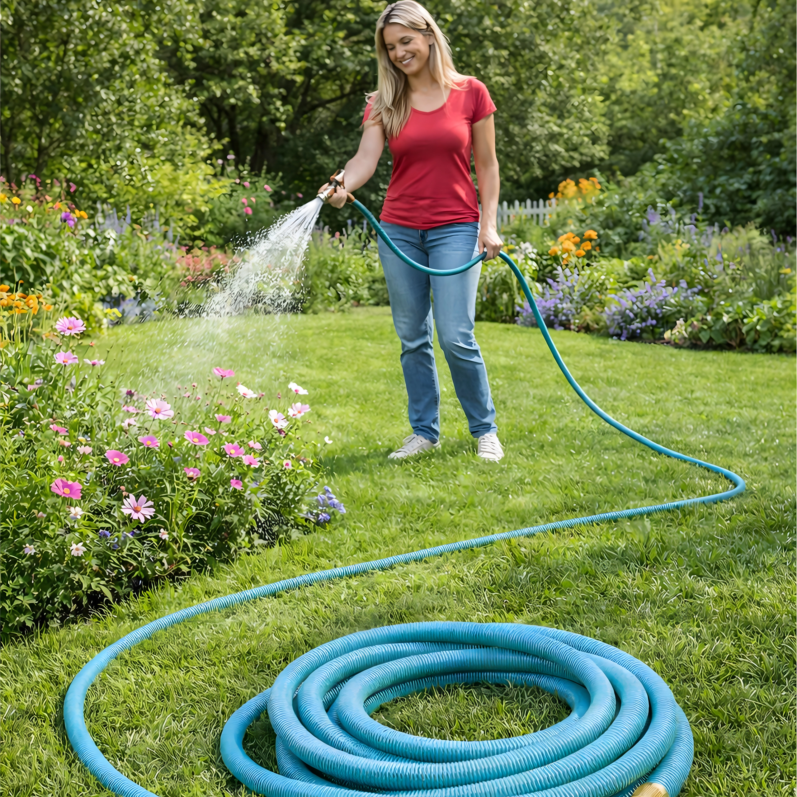 Hadice se při tlaku vody prodlouží až na trojnásobek a po vypnutí se smrští do kompaktní velikosti. Oplet odolný proti zlomení zajišťuje plynulý průtok bez uzlů.