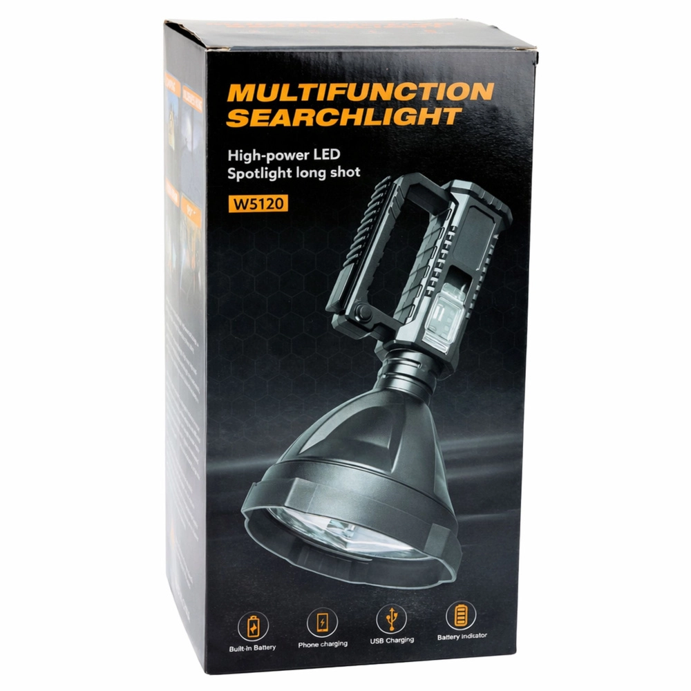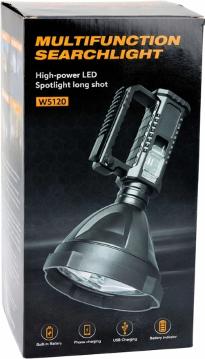 Reflektor má vestavěný akumulátor s nabíjením přes USB a praktickou funkci powerbanky pro nouzové dobití telefonu. Voděodolnost IPX5 chrání proti dešti a stříkající vodě. Ergonomická rukojeť a robustní zpracování zajišťují pohodlné držení i dlouhou životnost.