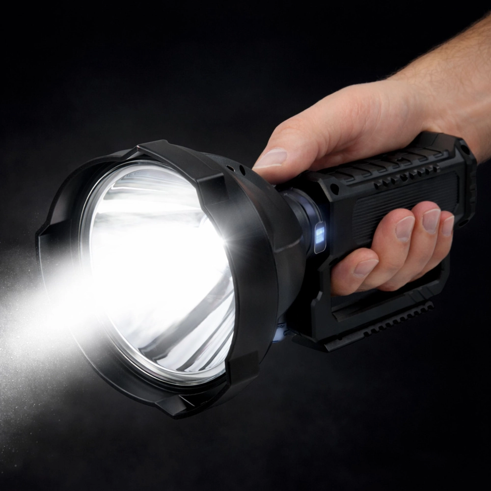 Velká parabola a hluboký reflektor vytváří úzký, daleký kužel světla – ideální pro pátrání, práci v terénu i noční aktivity.