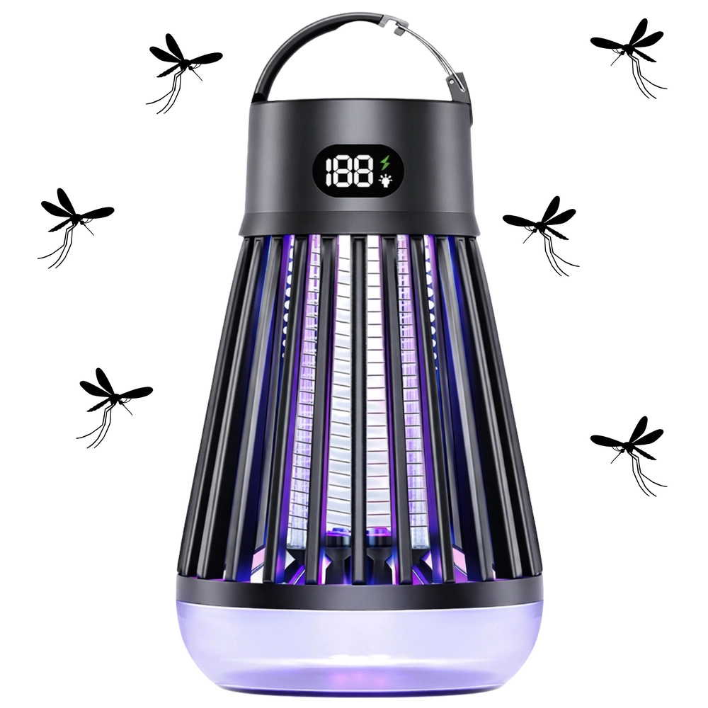 Praktická a moderní lampa proti komárům a létajícímu hmyzu kombinuje UV přilákání (365/395/410 nm) a elektrickou mřížku 2000 V pro rychlou likvidaci. Díky integrované LED lampě, dobíjecí baterii 2000 mAh až na 9 hodin provozu a USB‑C nabíjení je ideální do domu, na terasu, balkon i kempování. Bez chemie, s ochrannou mřížkou a přehledným digitálním displejem stavu.