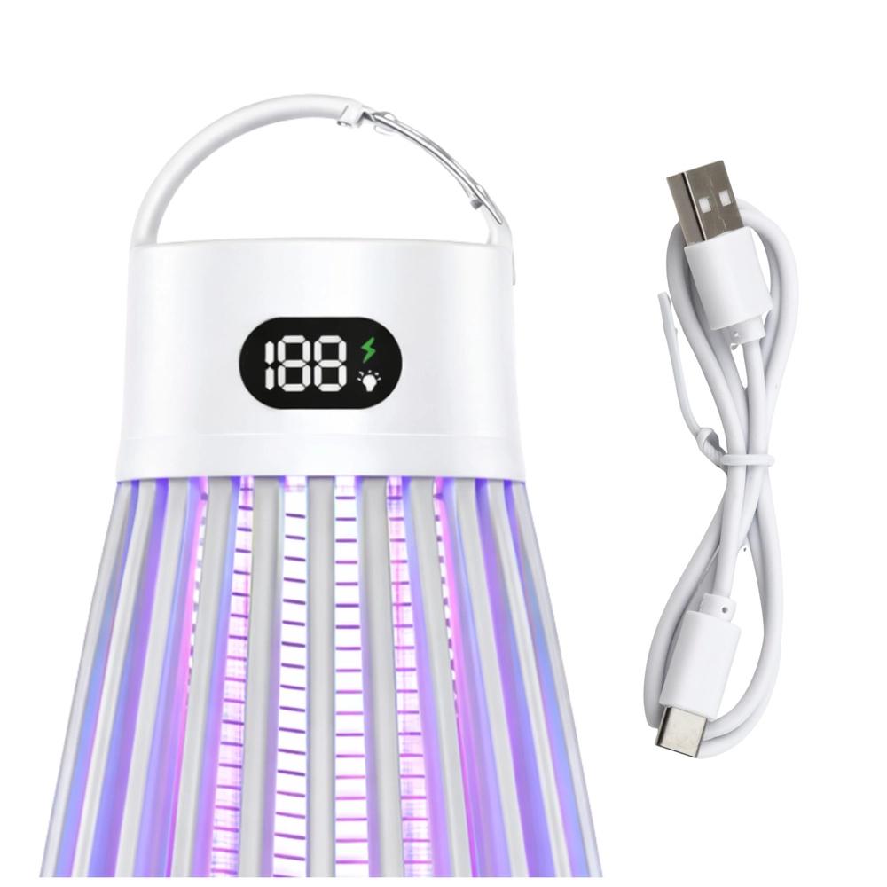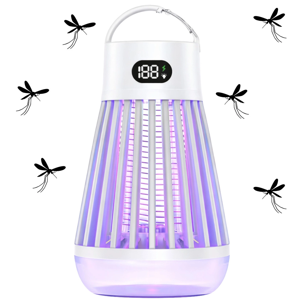 Moderní elektrická lampa proti hmyzu kombinuje účinné UV lákadlo (365/395/410 nm) a vnitřní elektrickou mřížku 2000 V pro rychlou likvidaci komárů a létajícího hmyzu. Díky dobíjecí baterii 2000 mAh, USB‑C nabíjení a tichému provozu bez chemie je ideální do bytu, na terasu, balkon i kempování. O bezpečný provoz se stará ochranná mřížka a přehledný digitální displej.