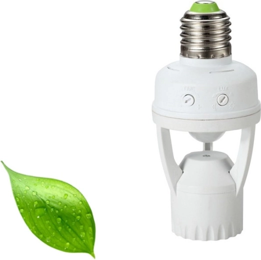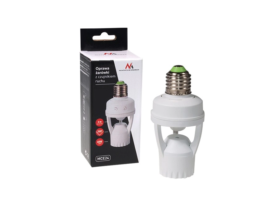 E27 objímka na žárovku s PIR čidlem pohybu a soumraku 360° MACLEAN