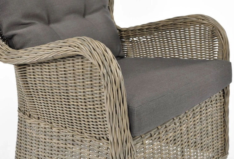 Výplet z polyratanu je odolný vůči vodě, UV záření a teplotním změnám. Hliníkový rám je pevný, nerezaví a zároveň lehký pro snadné přenášení i každodenní používání.
