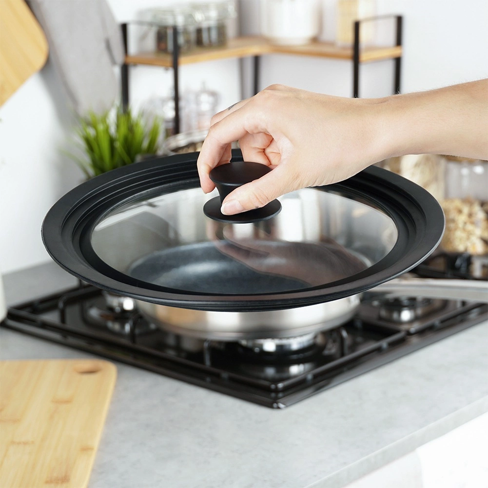 Široký silikonový lem zajišťuje těsné přilnutí, chrání hrany nádobí před poškozením a zvyšuje bezpečnost při manipulaci.