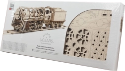 UGEARS Parní lokomotiva je unikátní stavebnice pro všechny nadšence železnic a modelářství. Tento model je vyroben z překližky s precizními laserovými výřezy, které umožňují snadné a přesné sestavení. Lokomotiva je opatřena natahovacím mechanismem, který umožňuje reálný pohyb vpřed i vzad. Podrobnosti jako kabina strojvůdce, sklápěcí žebřík, či klikový mechanismus dvojkolí umocňují autentický zážitek.
