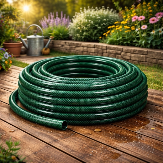 Kombinace vnitřní gumové duše, výztužné síťoviny a odolného pláště zajišťuje pevnost, tlakovou odolnost a spolehlivý průtok bez praskání.