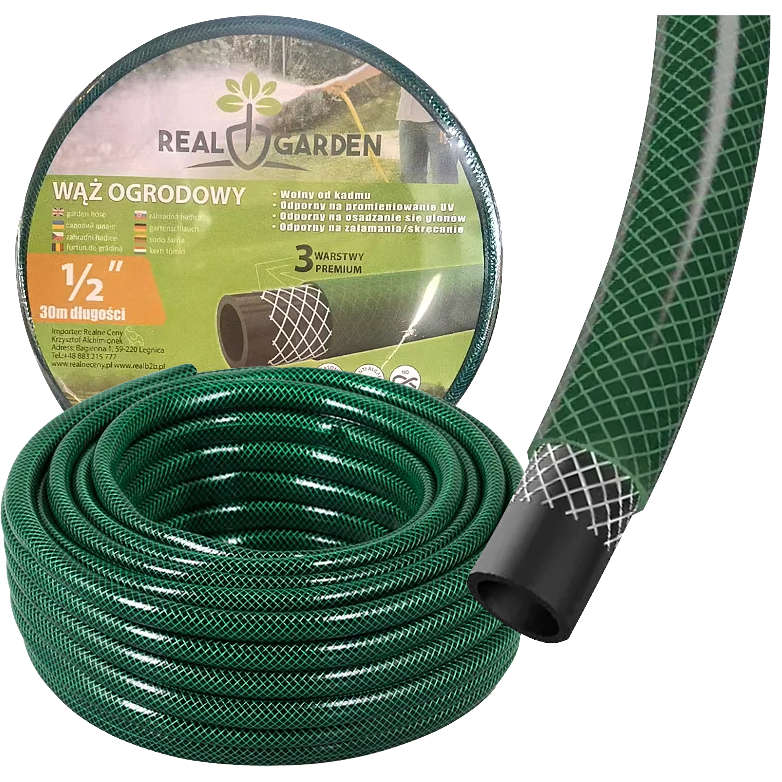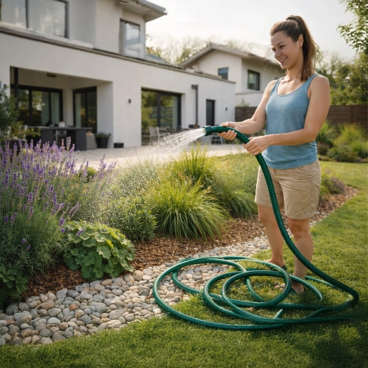 Díky délce 30 metrů pohodlně dosáhnete do všech koutů zahrady a průměr 1/2" je kompatibilní s běžnými rychlospojkami a postřikovači. Odolný vnější povrch lépe snáší venkovní podmínky a usnadňuje navíjení i skladování.