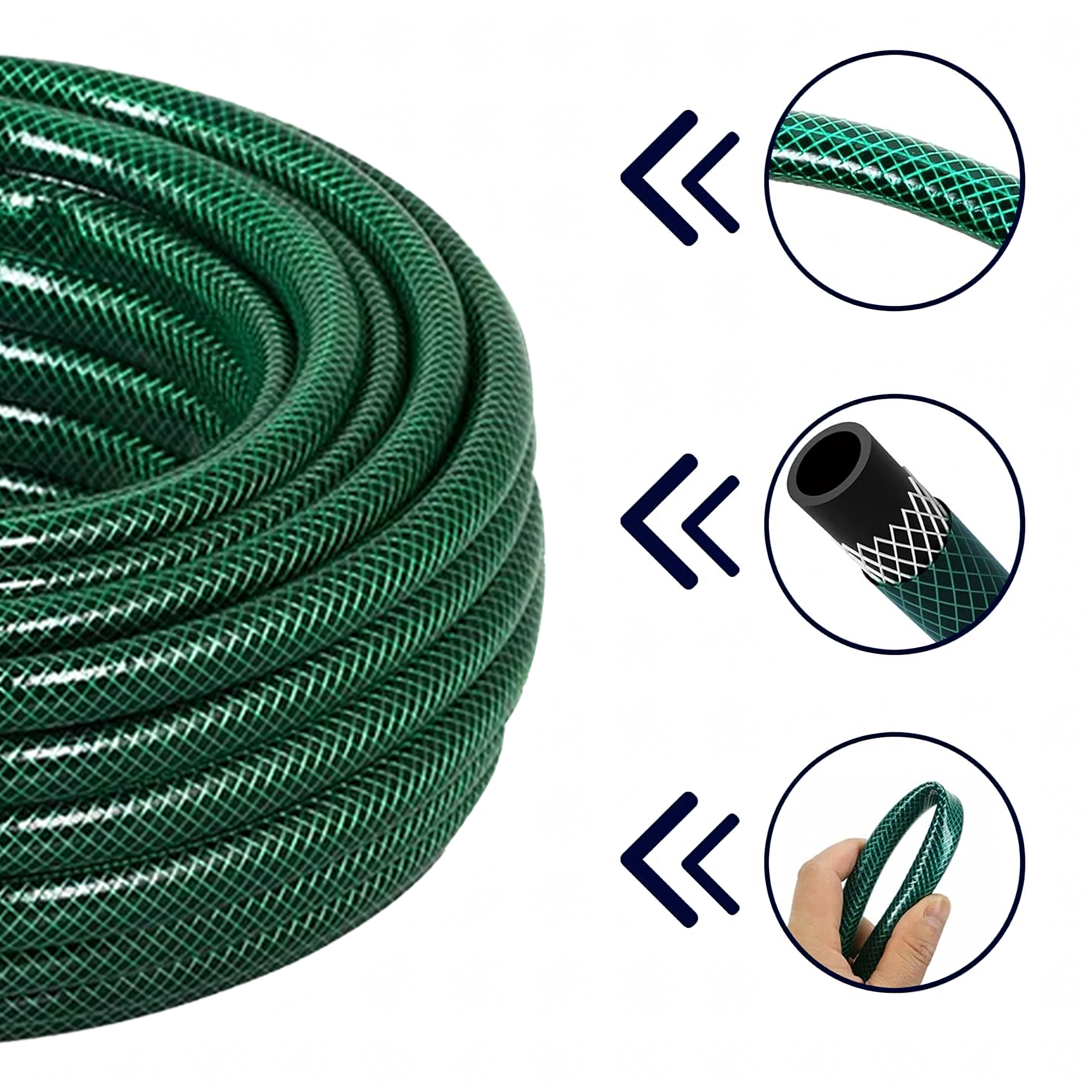 Výztuž s křížovým opletem pomáhá předcházet kroucení a zalamování hadice, takže zavlažování je plynulé a bez přerušení.