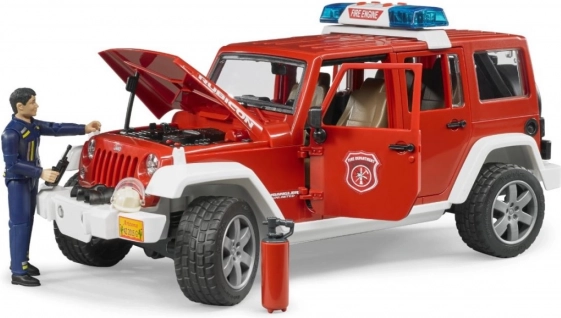 Požární Jeep Wrangler od Bruder je detailně zpracovaný model, který obohatí každý dětský hasičský sbor. Tento Jeep má otevírací dveře, kapotu a zadní okno, což zvyšuje jeho interaktivitu. Model je rovněž vybaven odnímatelnou střechou a tažným zařízením. Díky možnosti řízení pomocí prodlouženého volantu je hra ještě zábavnější.