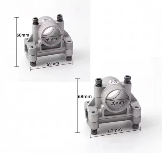 Nastavitelná svorka bezpečně sedí na trubce vyžínače o průměru 26–28 mm. Montáž je rychlá a bez speciálního nářadí.