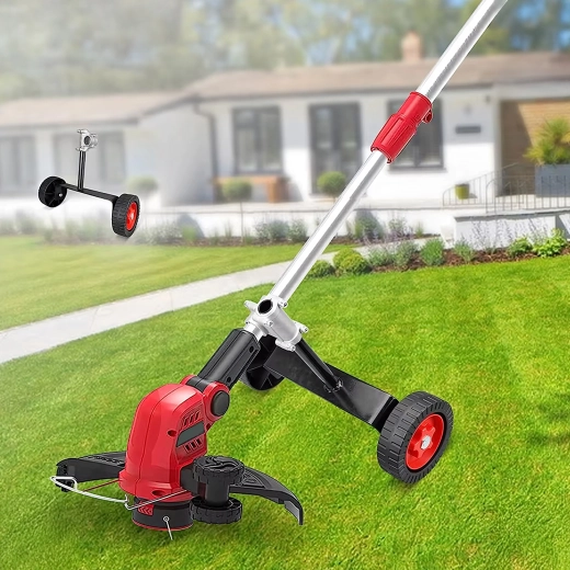 Dvě robustní kola podepřou vyžínač a pomohou vést střih přesně po linii obrubníků i záhonů, bez „zajíždění“ do trávníku.