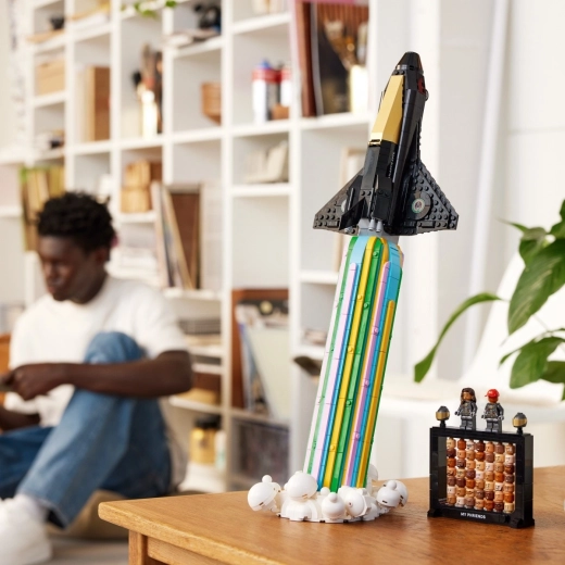 Postavte si ohromující raketoplán mířící ke hvězdám a vneste do svého domova porci inspirace a radosti. Tento sběratelský model LEGO Icons zachycuje moment startu na pestrobarevném oblaku plamenů a kouře, doplněný o exkluzivní minifigurky PHARRELLA a HELEN WILLIAMS.