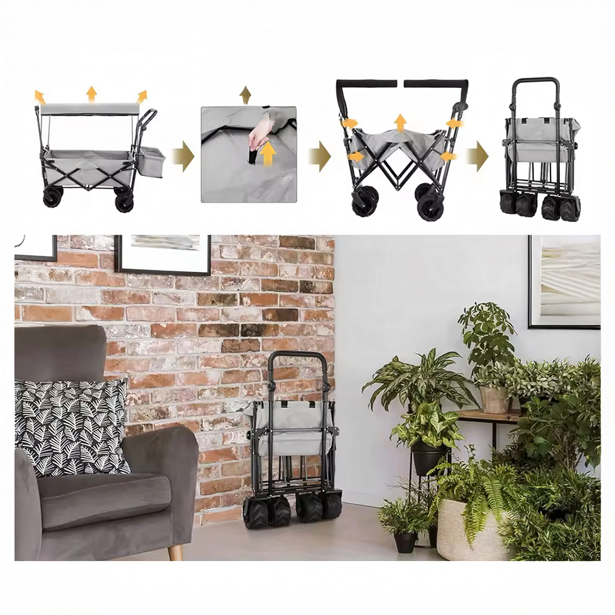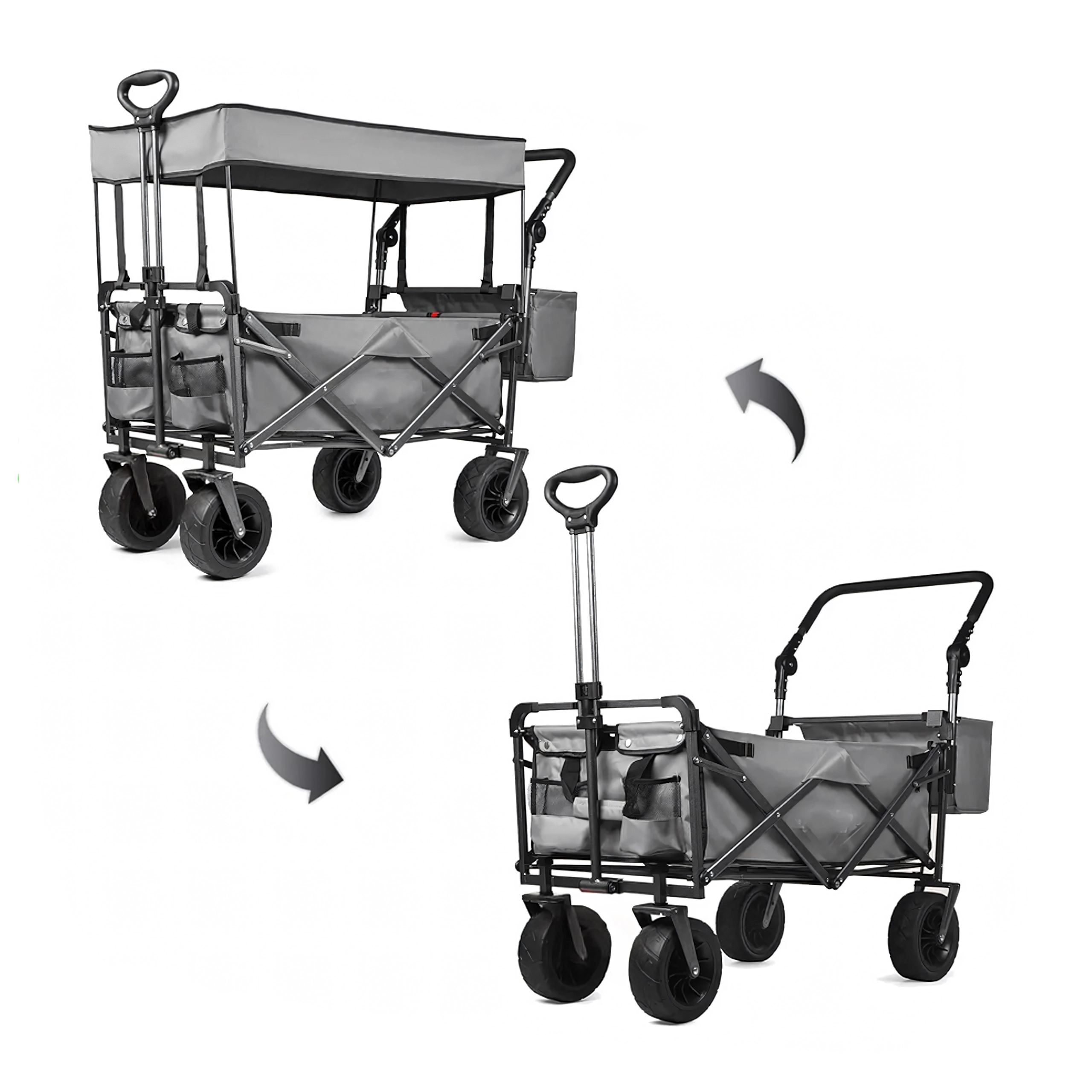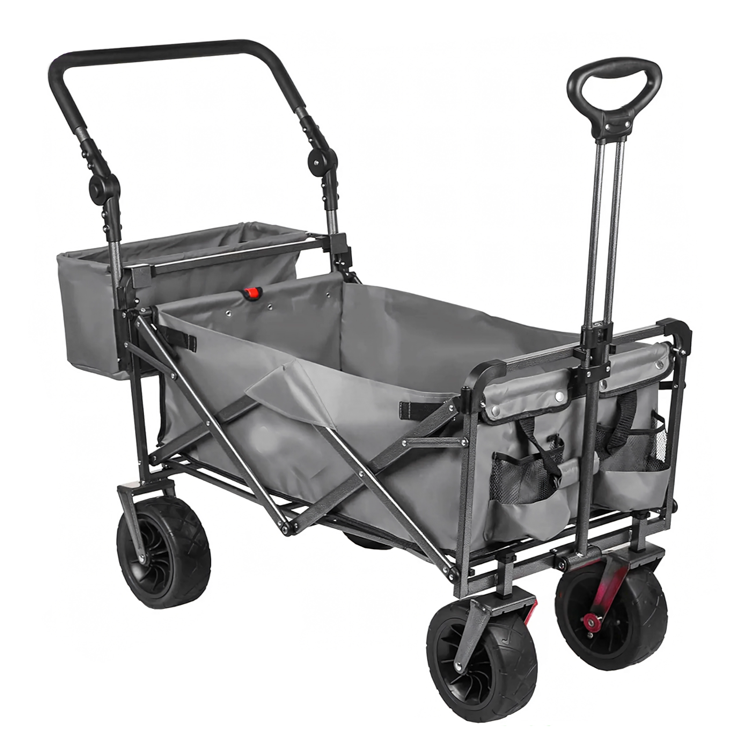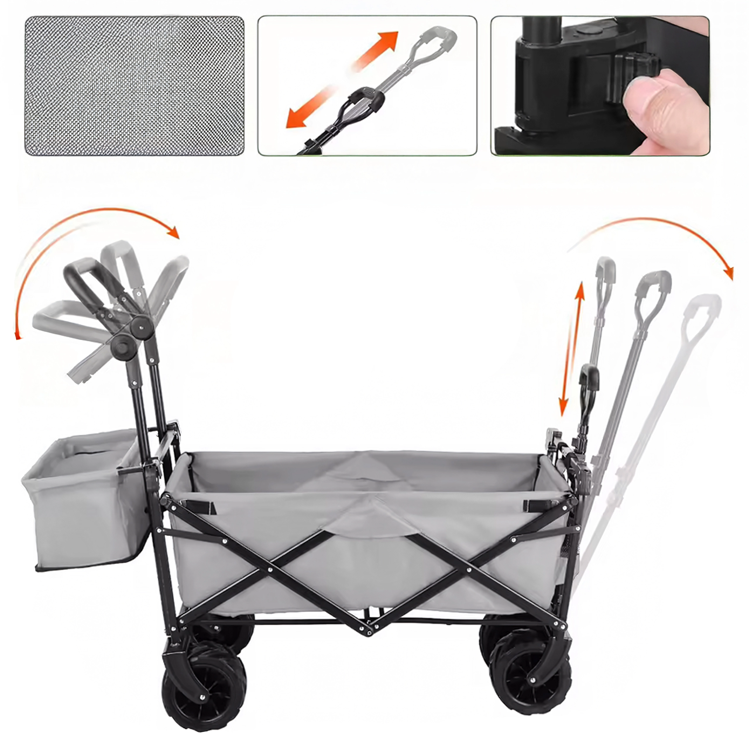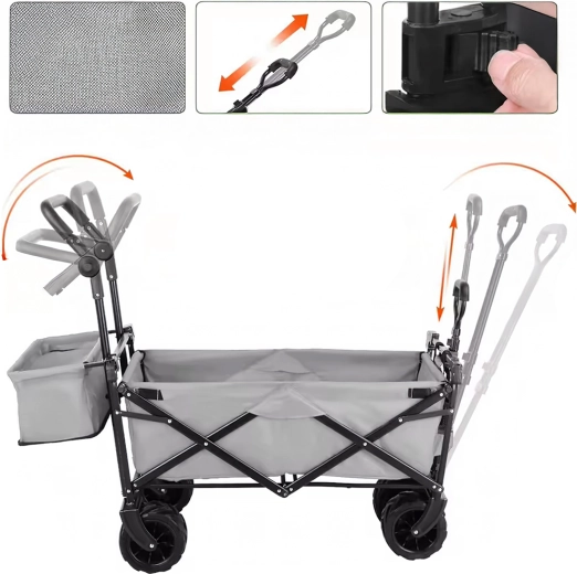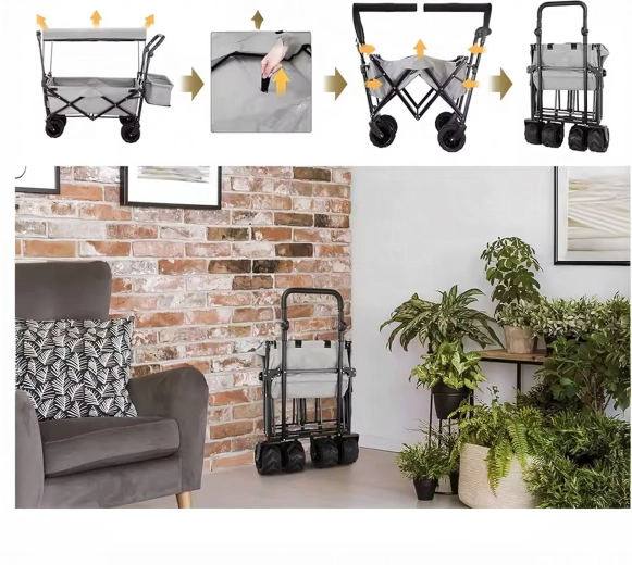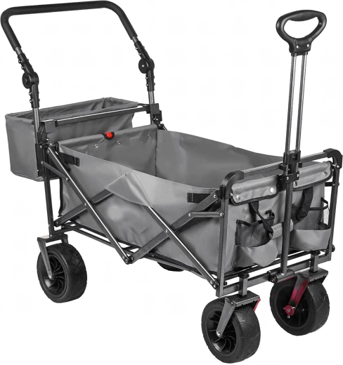 Vozík složíte během pár vteřin do kompaktní podoby, takže nezabere místo v kufru auta ani v garáži. Teleskopická tažná rukojeť a případné příruční kapsy zvyšují komfort při převážení. Skvělá volba pro rodiny, chataře i aktivní uživatele, kteří hledají spolehlivý a skladný transportní vozík.