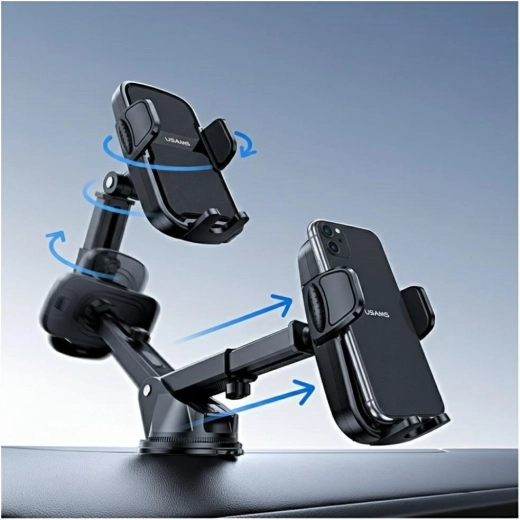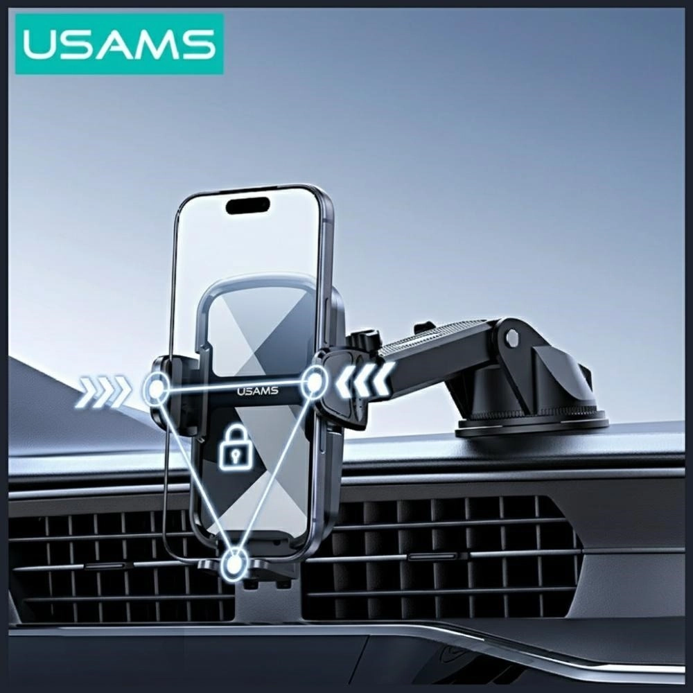 Praktický a stabilní držák do auta USAMS pro montáž na čelní sklo nebo palubní desku zajistí bezpečné uchycení telefonu, pevnou přilnavost díky silné přísavce a snadné nastavení úhlu pro pohodlnou navigaci a hovory handsfree.