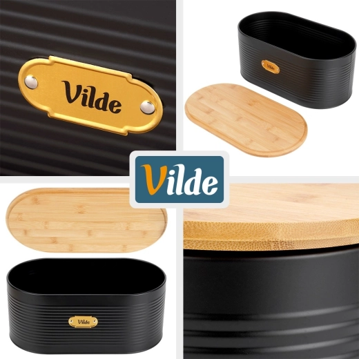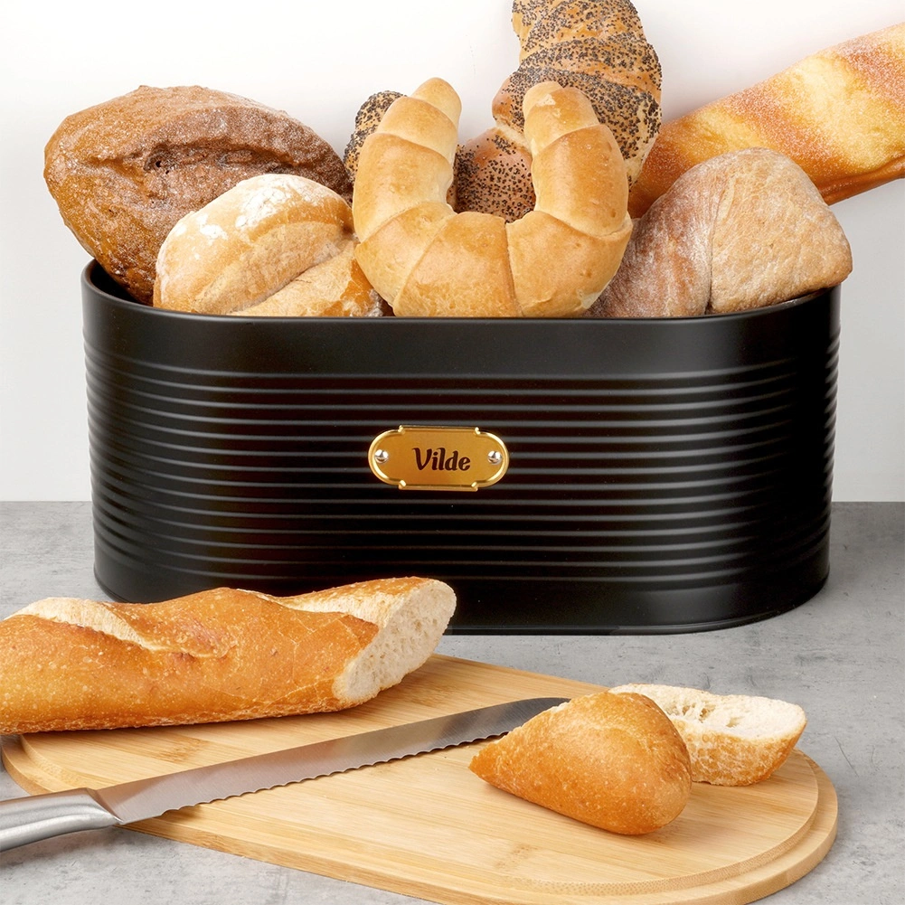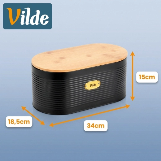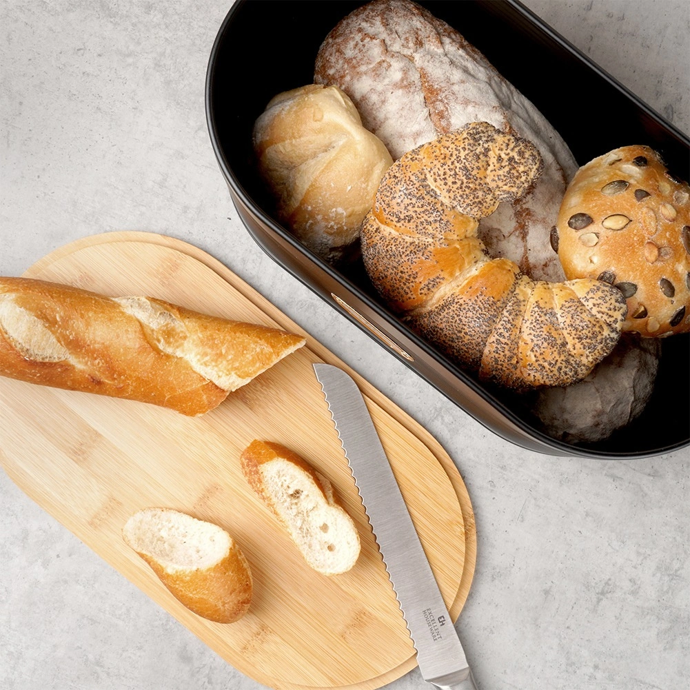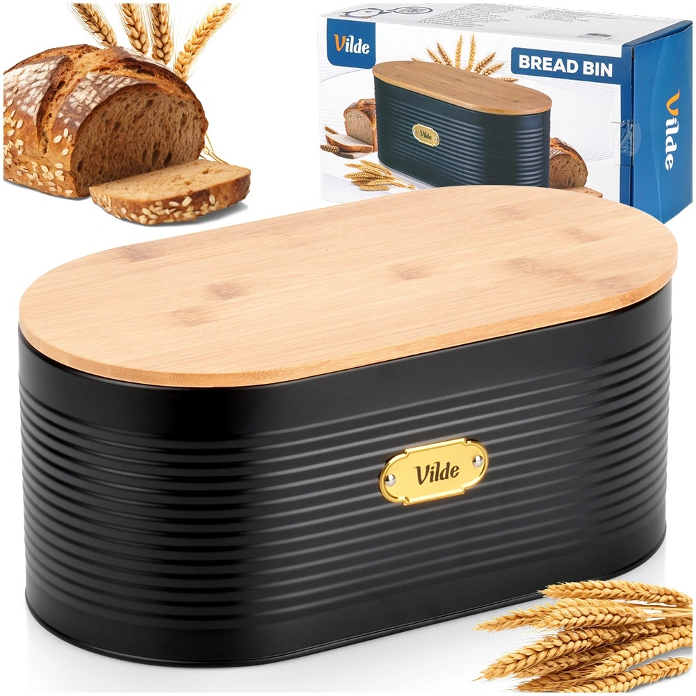 Designový chlebník spojuje odolný lakovaný kov s přírodním bambusem pro dlouhou čerstvost pečiva a pořádek na kuchyňské lince. Díky oválnému tvaru a rozměrům 34 × 18,5 × 15 cm je dostatečně prostorný pro chléb, rohlíky, housky i další pečivo.