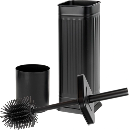 Ergonomická rukojeť se příjemně drží a usnadňuje tlak při drhnutí. Vyjímatelná vnitřní nádoba a odkapávací systém udržují stojan čistý a bez zápachu. Díky nadčasové černé barvě a minimalistickému tvaru se set skvěle hodí do klasických i moderních koupelen.