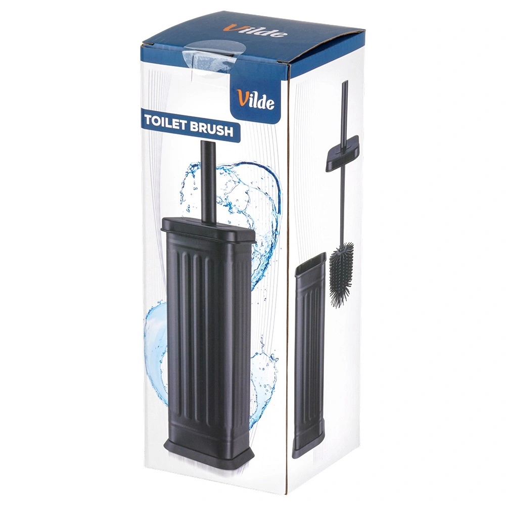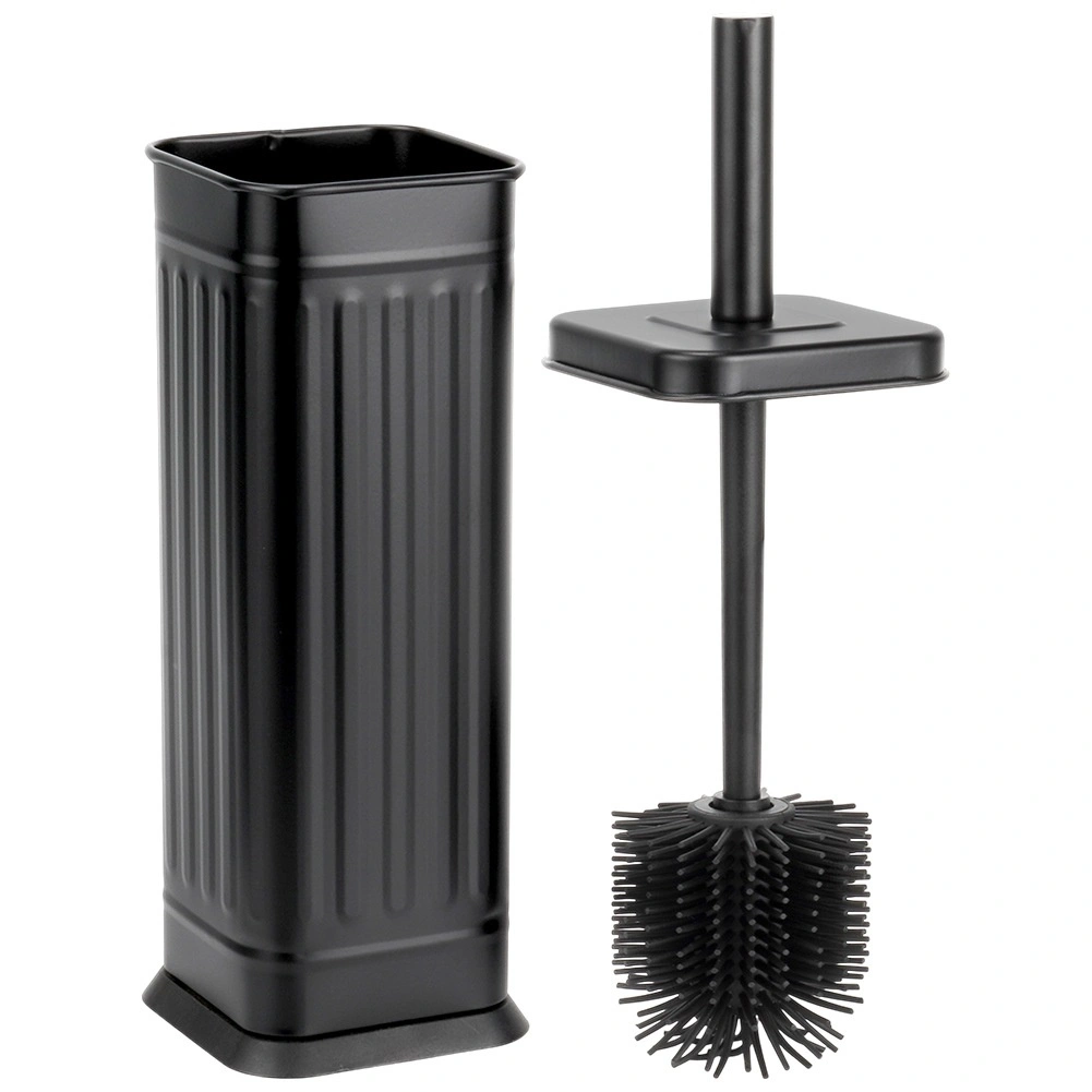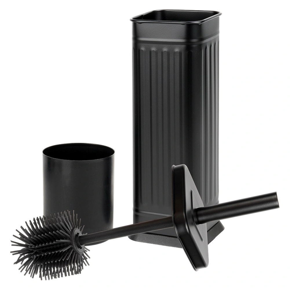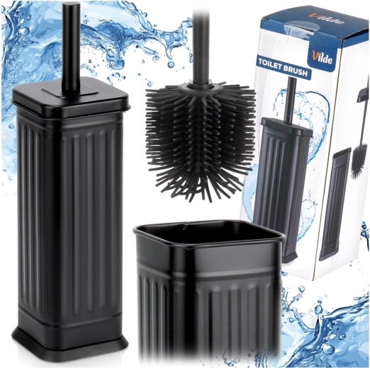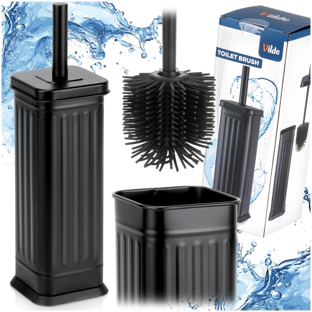 Elegantní a hygienická silikonová WC štětka s kovovým uzavřeným stojanem v černé barvě pro čistou a upravenou koupelnu. Flexibilní silikonové štětiny pro důkladné čištění, pohodlné držadlo a vyjímatelná vložka pro snadnou údržbu. Stylový design, který zapadne do každého interiéru.