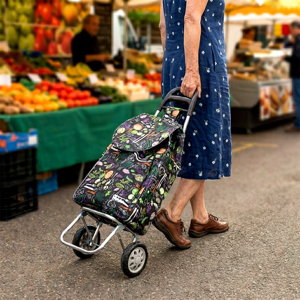 Už žádné tahání těžkých tašek v ruce. Tento nákupní vozík s objemem 30 litrů je ideální pro každodenní nákupy i delší pochůzky. Stabilní kovový rám a velká kola zajišťují hladkou jízdu po chodnících i dlažbě, zatímco ergonomická rukojeť poskytuje jistý úchop.