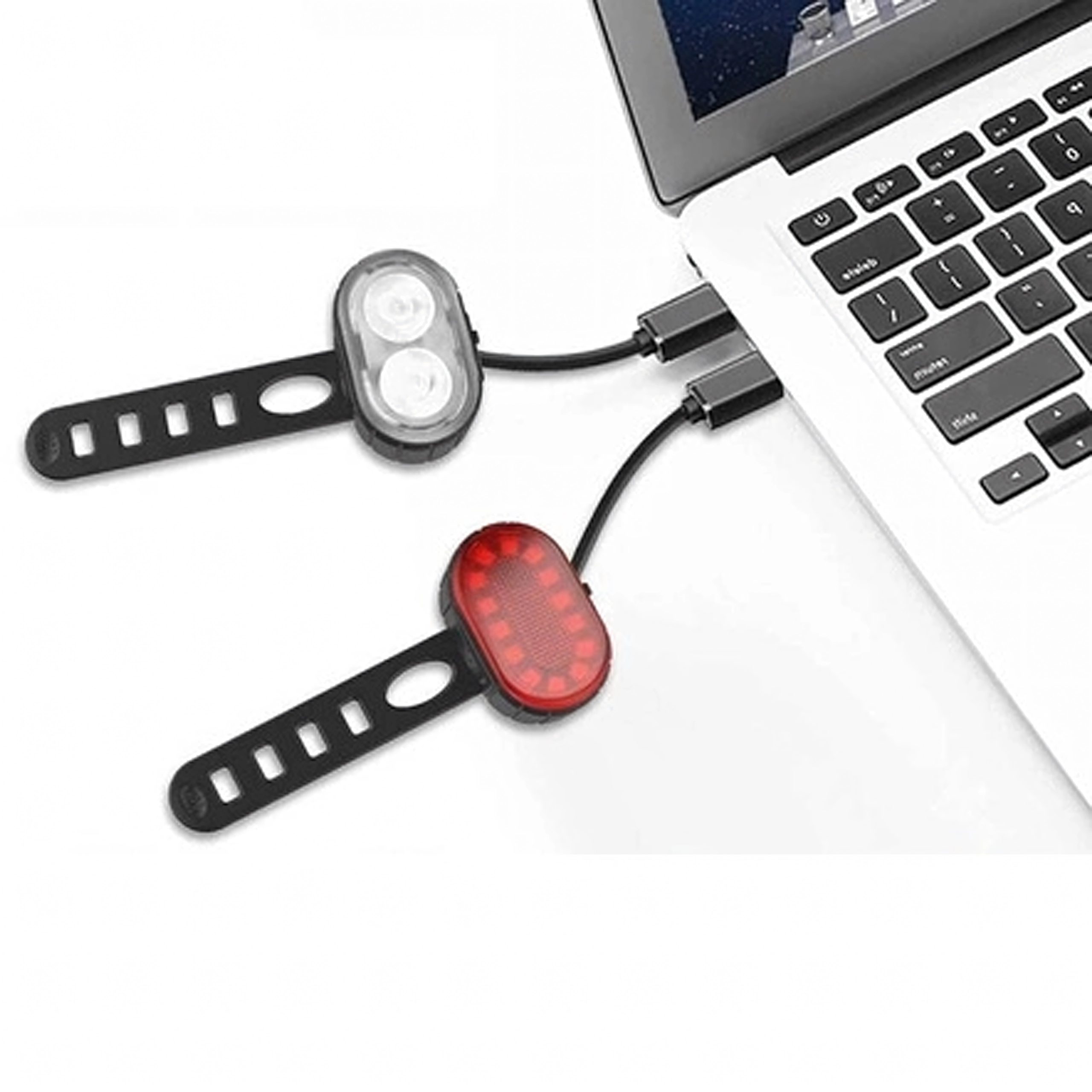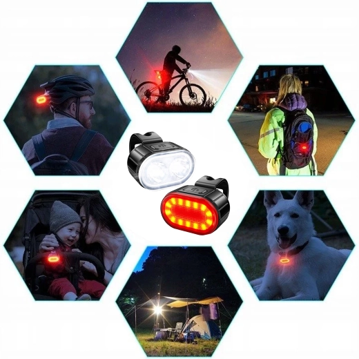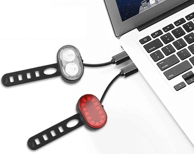 - 1× přední světlo, 1× zadní světlo, USB kabel(y), upevňovací pásky