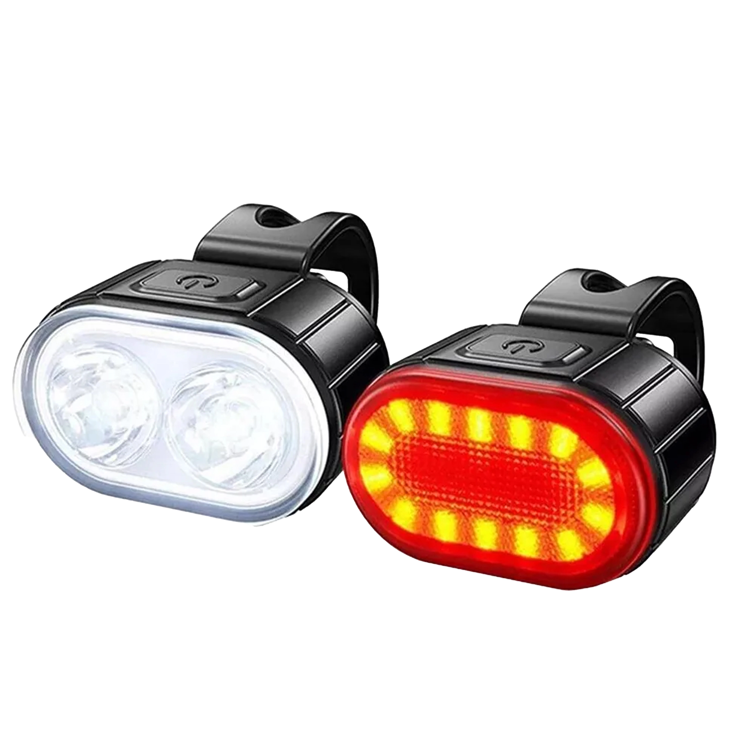 Zvyšte svou bezpečnost při jízdě ve tmě se sadou kompaktních cyklo světel – přední bílé a zadní červené. Obě lampy nabídnou silné LED, snadnou montáž na řídítka či sedlovku, USB dobíjení a voděodolné provedení pro spolehlivé svícení za každého počasí.