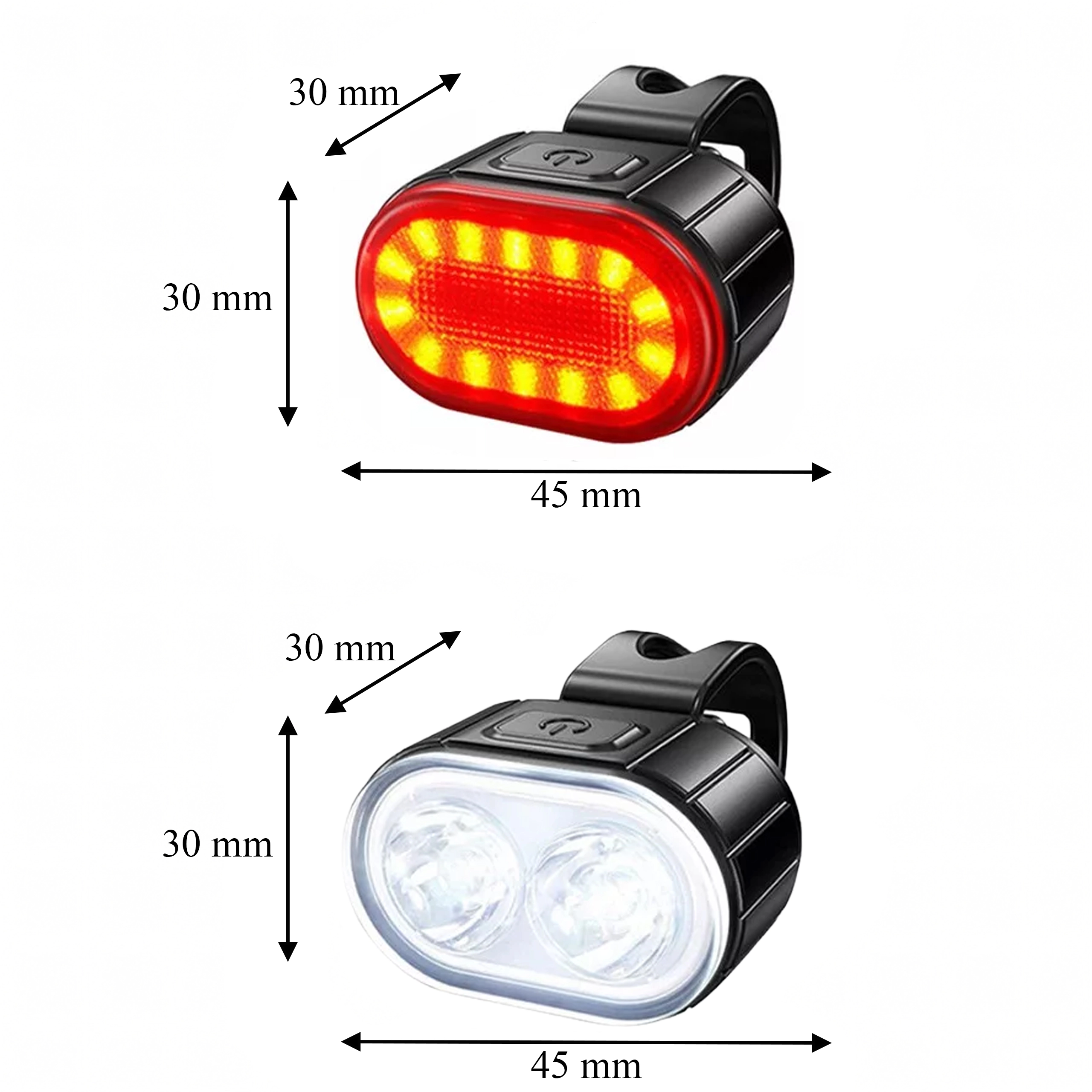 - Vysoká viditelnost – jasná bílá pro cestu vpřed a intenzivní červená pro bezpečné označení zezadu.