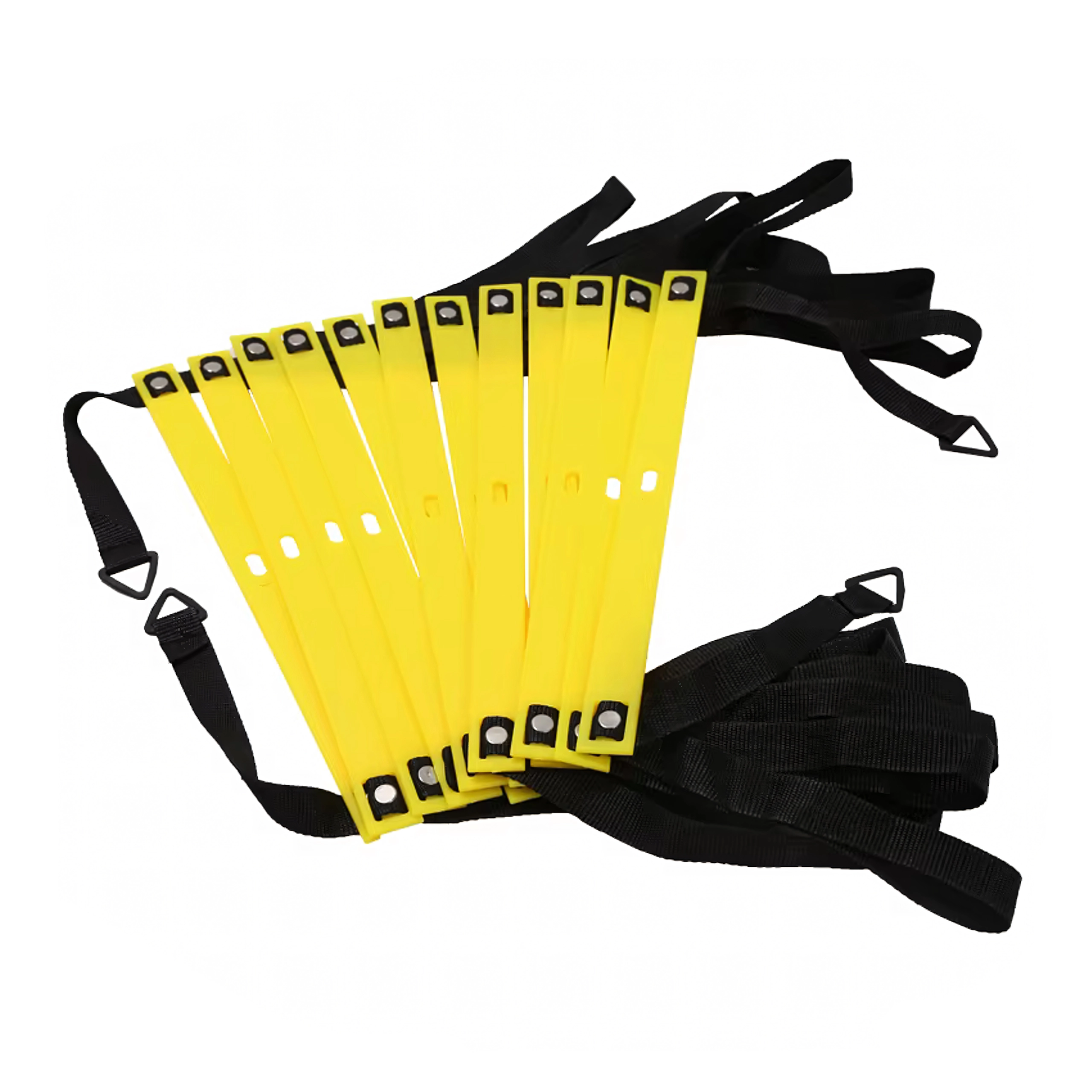 Ploché žluté příčky na pevných popruzích lze jednoduše posouvat. Ideální pro rychlé kroky, laterální pohyb a zlepšení rovnováhy i rytmu běhu.
