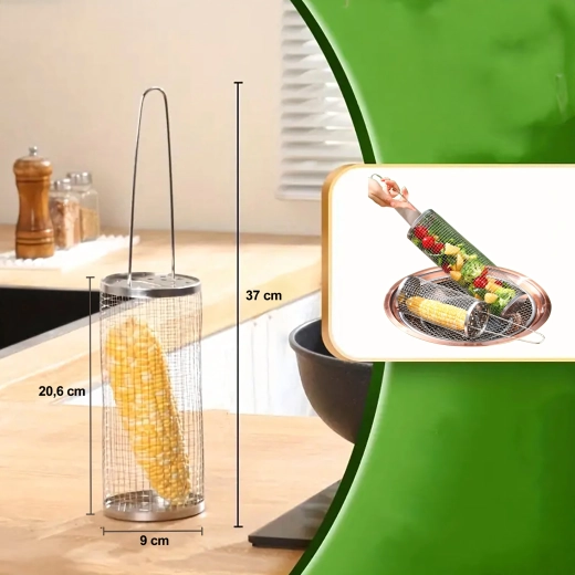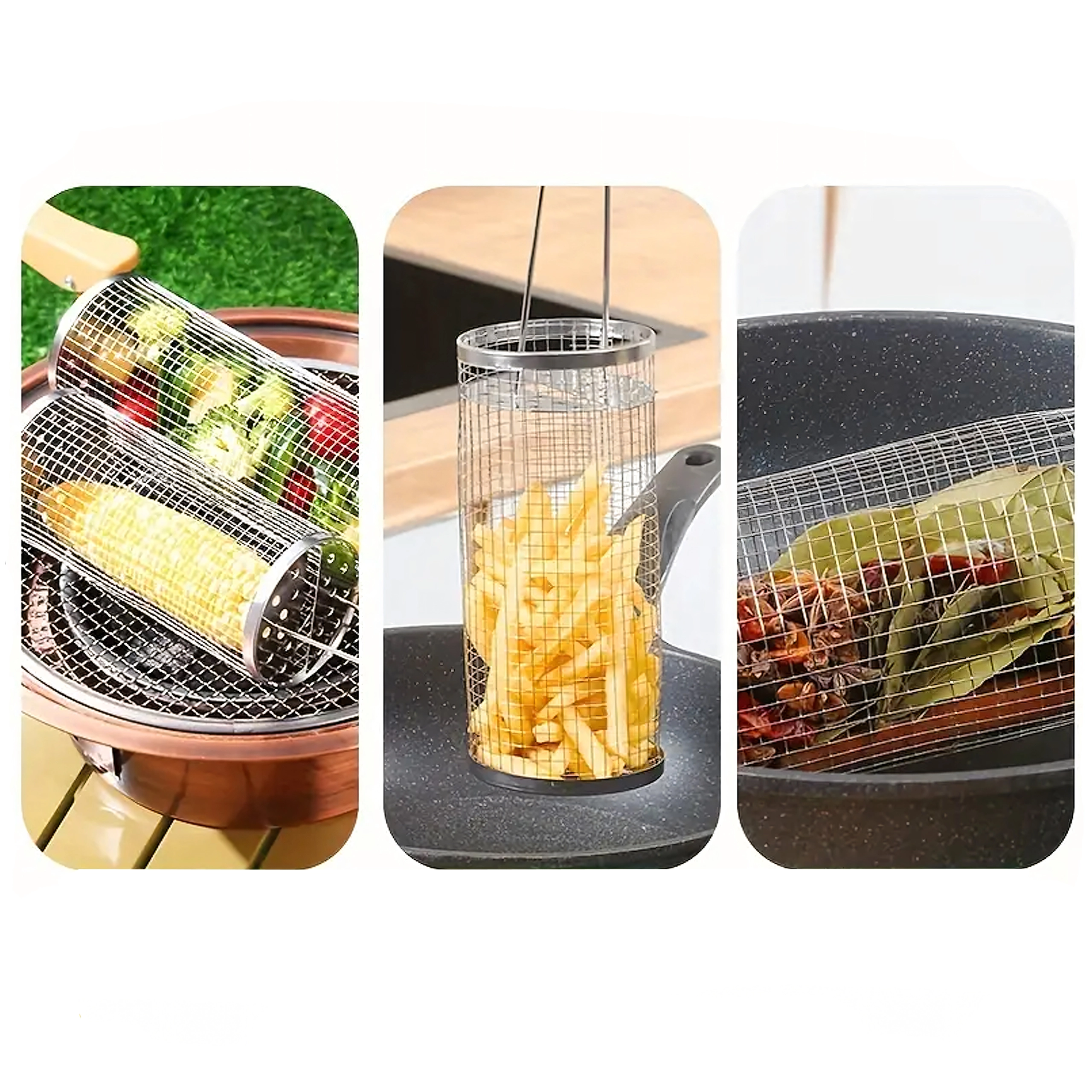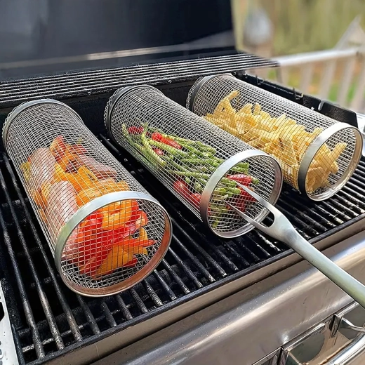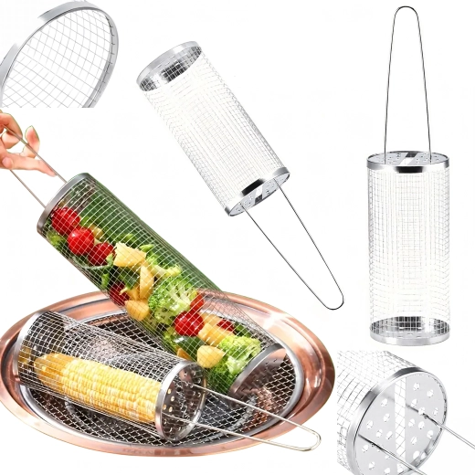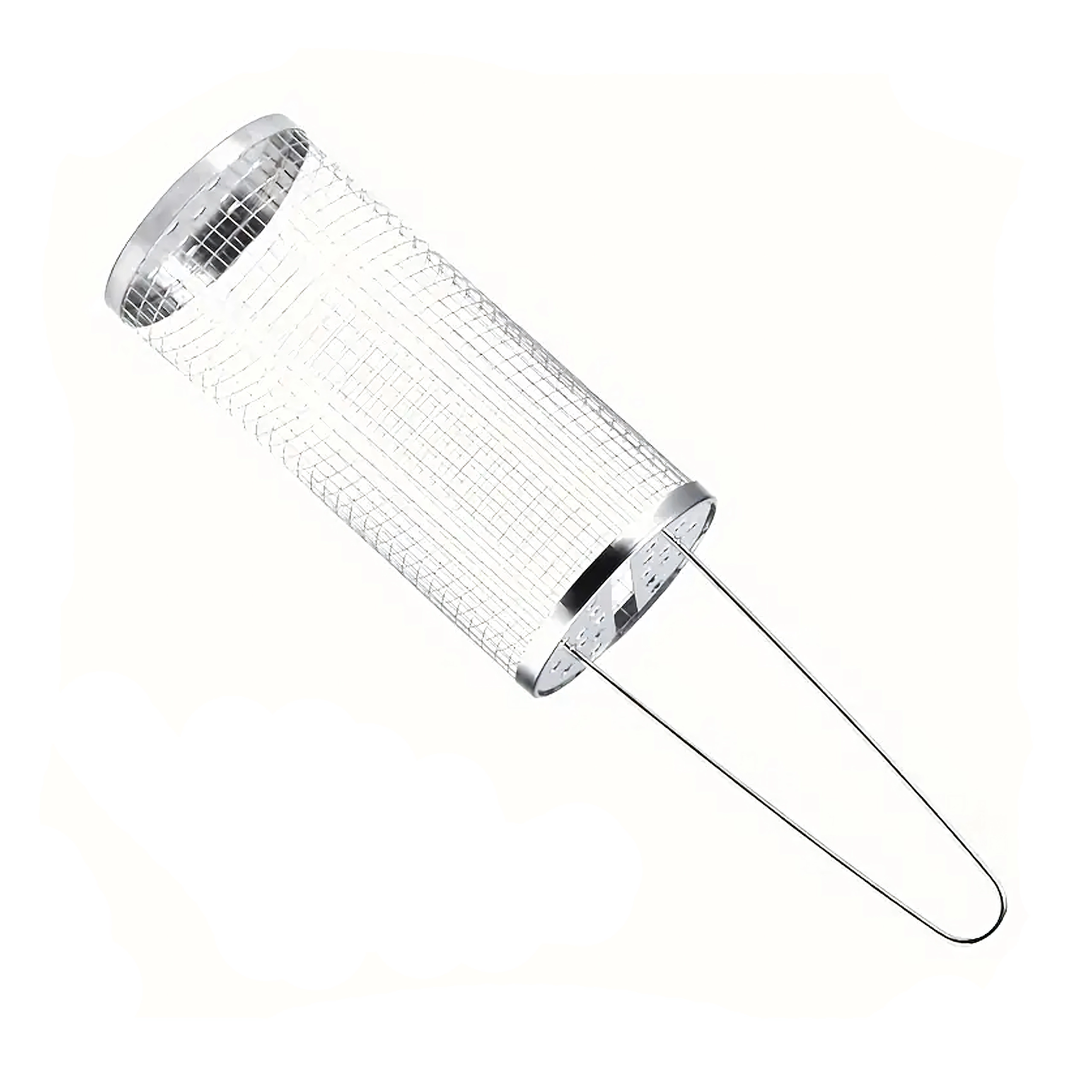 Válcový koš z nerezové síťoviny je ideální pro grilování drobných surovin, které by jinak propadly roštem. Jemné perforace propouštějí teplo i kouř, takže dosáhnete křupavého povrchu a šťavnatého středu bez nepořádku na grilu. Otočné provedení usnadňuje rovnoměrné propečení bez nutnosti obracet jednotlivé kousky.