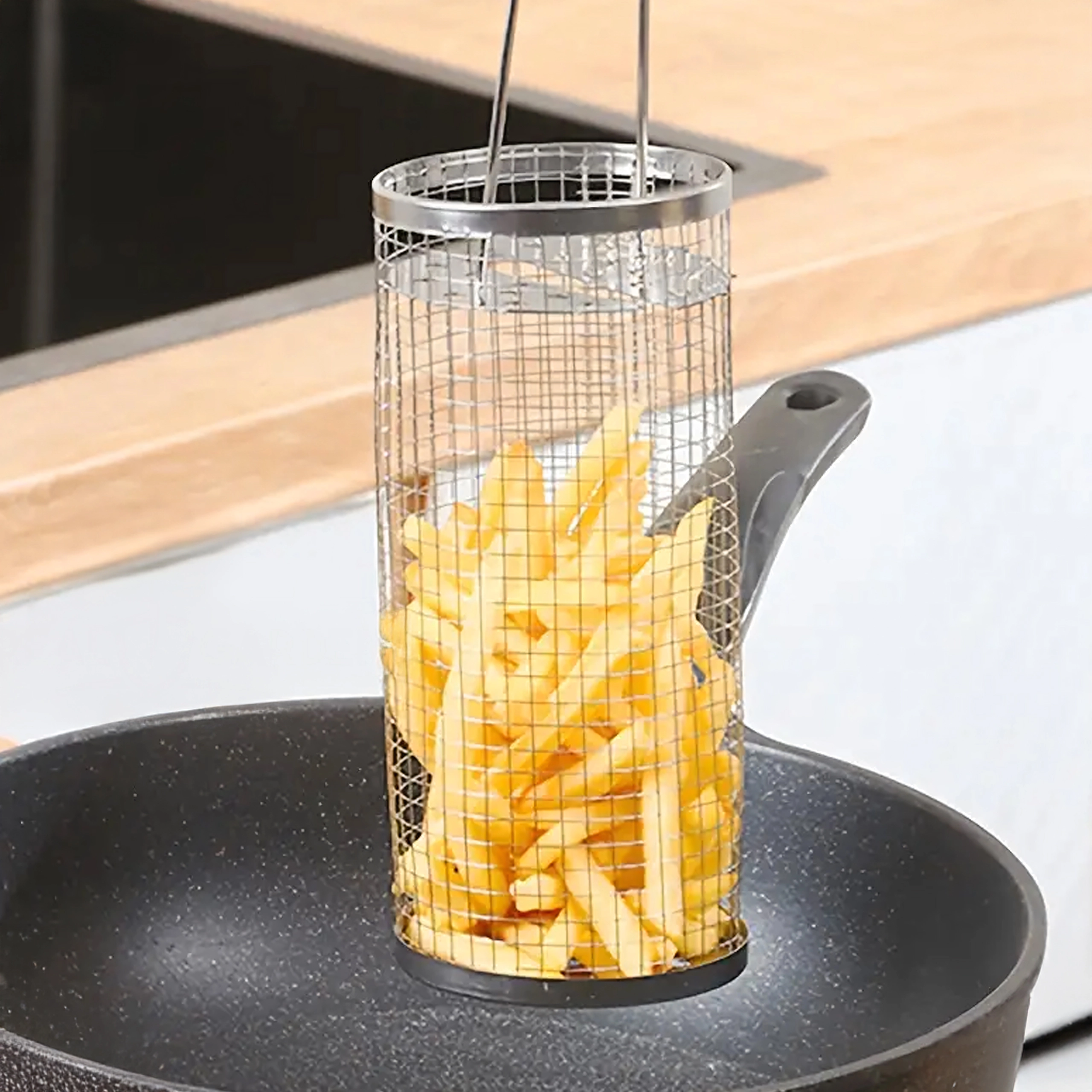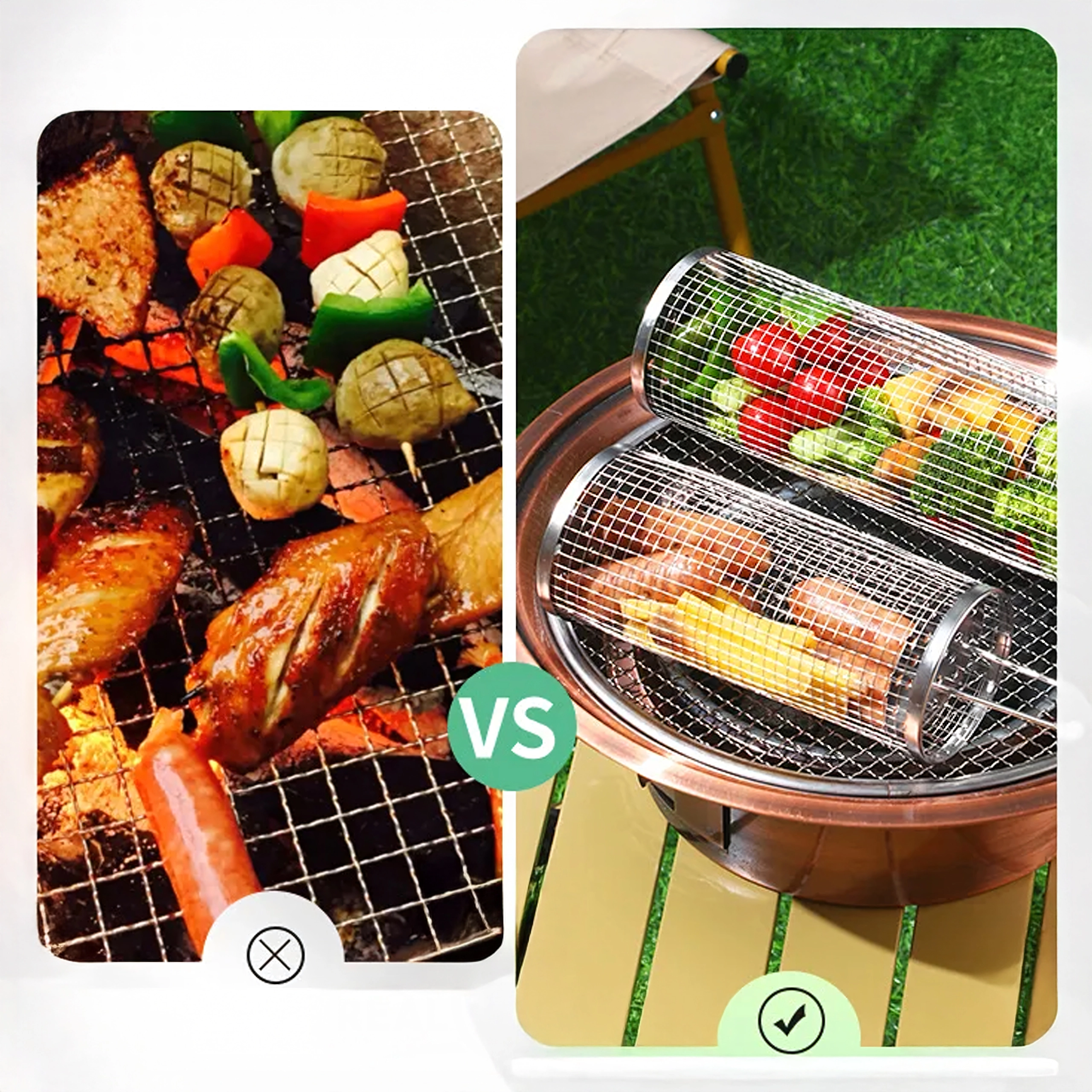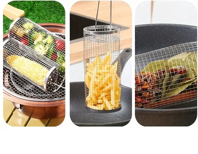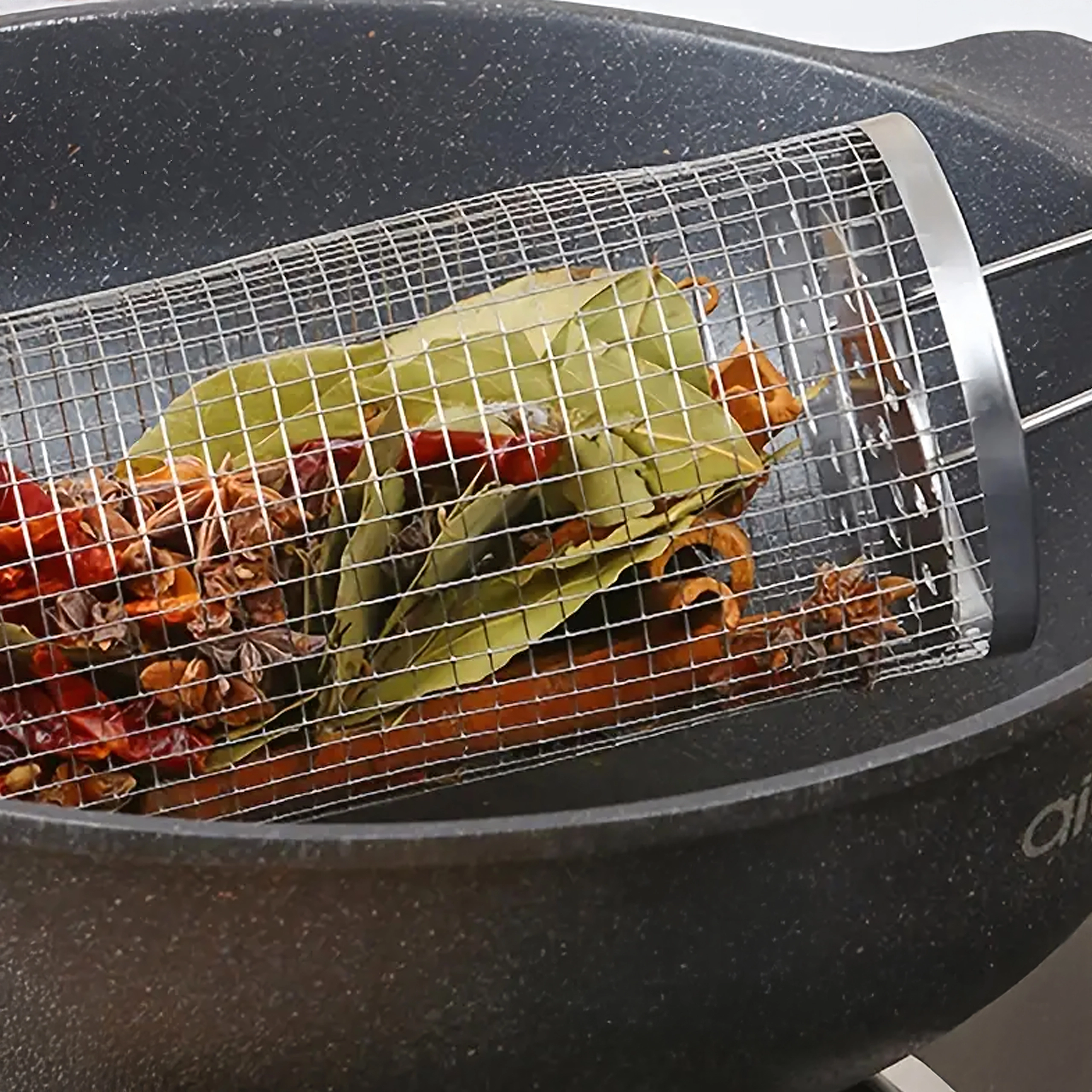 Válcový koš z nerezové síťoviny je ideální pro grilování drobných surovin, které by jinak propadly roštem. Jemné perforace propouštějí teplo i kouř, takže dosáhnete křupavého povrchu a šťavnatého středu bez nepořádku na grilu. Otočné provedení usnadňuje rovnoměrné propečení bez nutnosti obracet jednotlivé kousky.