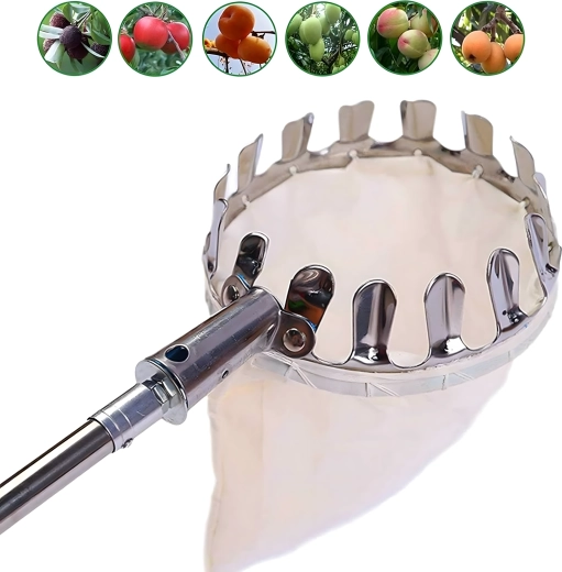 Tento univerzální česáček je navržen pro pohodlné a bezpečné sklizně na zahradě i v sadu. Díky teleskopické tyči s dosahem až 4 metry bez námahy dosáhnete na vysoké větve a sklidíte plody bez otlaků – o to se postará kovový koš s prsty a měkký látkový vak.