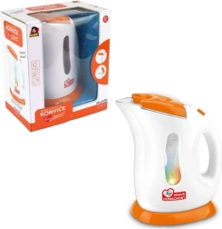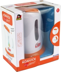 Dětská rychlovarná konvice na baterie o výšce 21 cm nesmí chybět v žádné malé kuchyňce. Hračka mluví českým hlasem a hlásí věty jako „Hotovo“ a „Voda vaří, pozor ať tě neopaří“. Skvělá volba pro rolové hry, rozvoj fantazie a jemné motoriky.